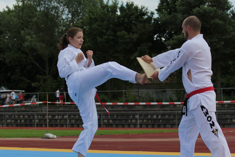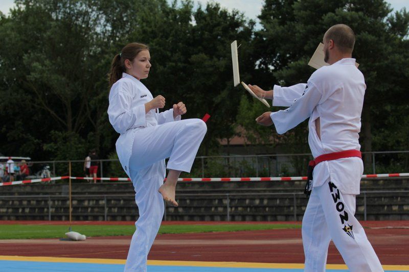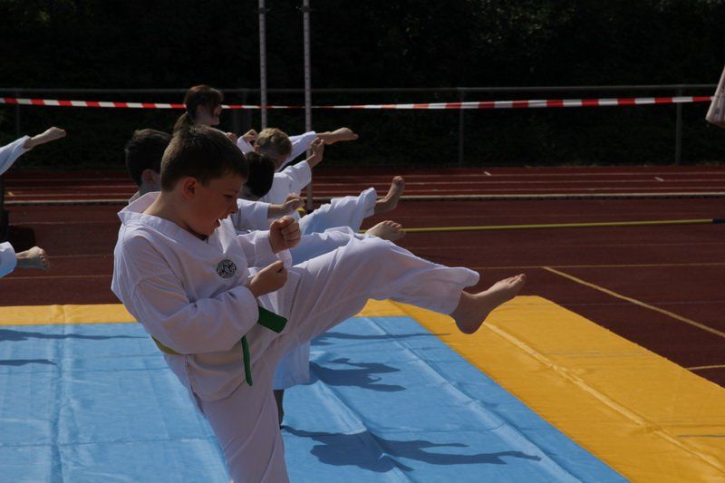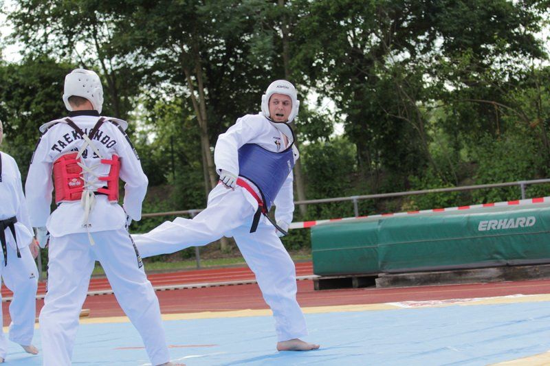„Uns hat es natürlich sehr gefreut, dass wir dieses Hochsprung-Meeting in diesem Rahmen abhalten konnten“, so Harald Rapp, denn so konnten die Leichtathleten auch einmal Spitzensport vor einem breiten Publikum zeigen. Spektakulär ging es dann auch weiter: die Taekwondoler zeigten auf beeindruckende Art und Weise, was ihren Kampfsport ausmacht und auch wie man möglichst schnell Kleinholz für den Winter macht.