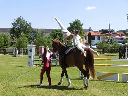 Die Voltigiermädchen starteten nur als Schaunummern, da gibt es eigene Turniere, und sie mussten des harten Bodens wegen auch ihre Übungen nur im Schritt vorführen. Trotzdem war ihre Leistung beachtlich. Parallel auf Spring- und Dressurplatz wurden dann die einzelnen Reitkategorien abgehalten, anbei die ersten Zwei in jeder Klasse: