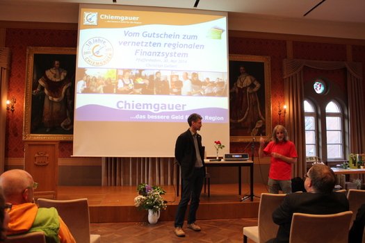 Christian Gelleri vom Chiemgauer, dem größten Regiogeld in Deutschland, gab einen in seinem Vortrag "Vom Gutschein zum vernetzten Finanzsystem" einen Ausblick was auch für Pfaffenhofen möglich wäre.