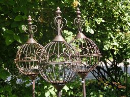 Wie immer sehr geschmackvoll dekoriert präsentiert sich die Ausstellung dem Besucher. Viele wunderschöne Pflanzgefäße aber auch Nützliches, wie Staudenstützen und Rankgitter, oftmals aus verrostetem Material, setzen neue Akzente auch im gepflegtesten Garten. Gartenmöbel laden zum Sitzen aber auch zum Kauf ein. Neu in der Ausstellung sind diesmal Gefäße aus Fiberglas.