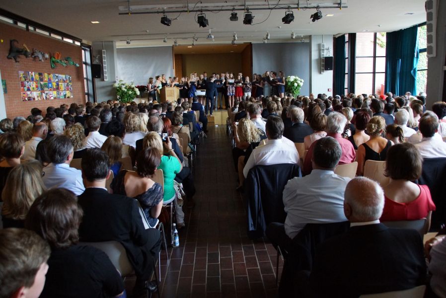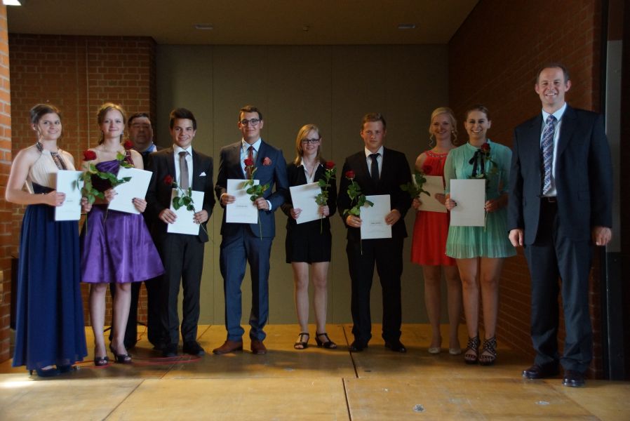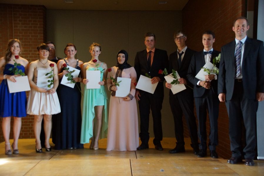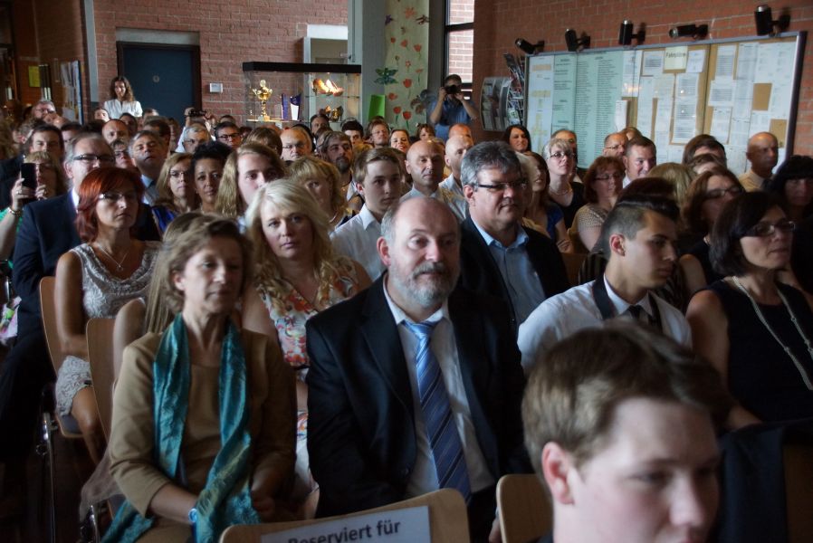 Für 132 Schülerinnen und Schüler war dieser Tag das offizielle Ende ihrer 12-jährigen Schullaufbahn. Einige hatten zwar noch ein, zwei Jahre mehr „auf dem Buckel“, aber auch für sie endete mit dieser feierlichen Verabschiedung ein wichtiger Lebensabschnitt. Der Durchschnitt der Schule ist mit der Note 2,34 sehr gut und 40 von ihnen haben sogar eine Eins vor dem Komma.