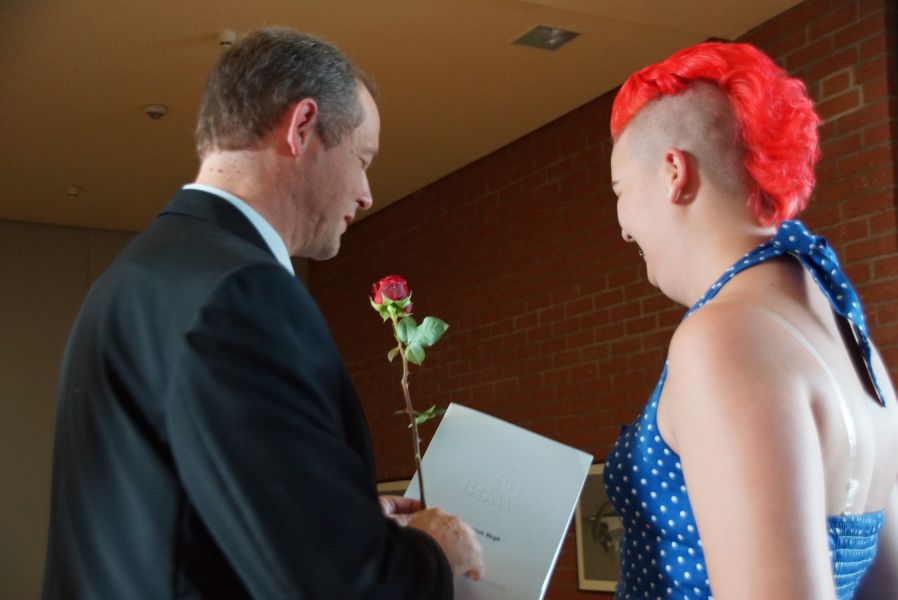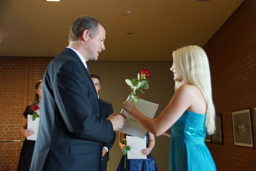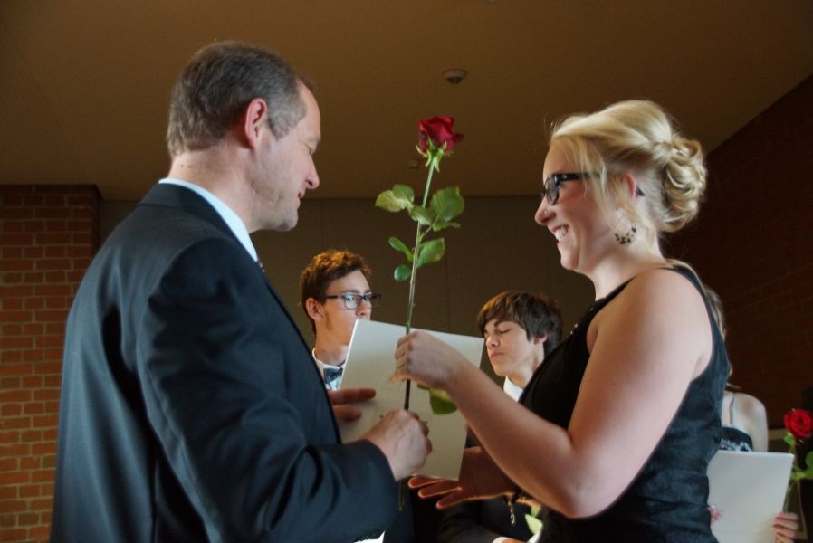 Nach weiteren lustigen Anekdoten des neuen Oberhauptes des GGM, überreichte er schließlich die Zeugnisse sowie je eine Rose und beglückwünschte nochmal jeden einzelnen persönlich.
