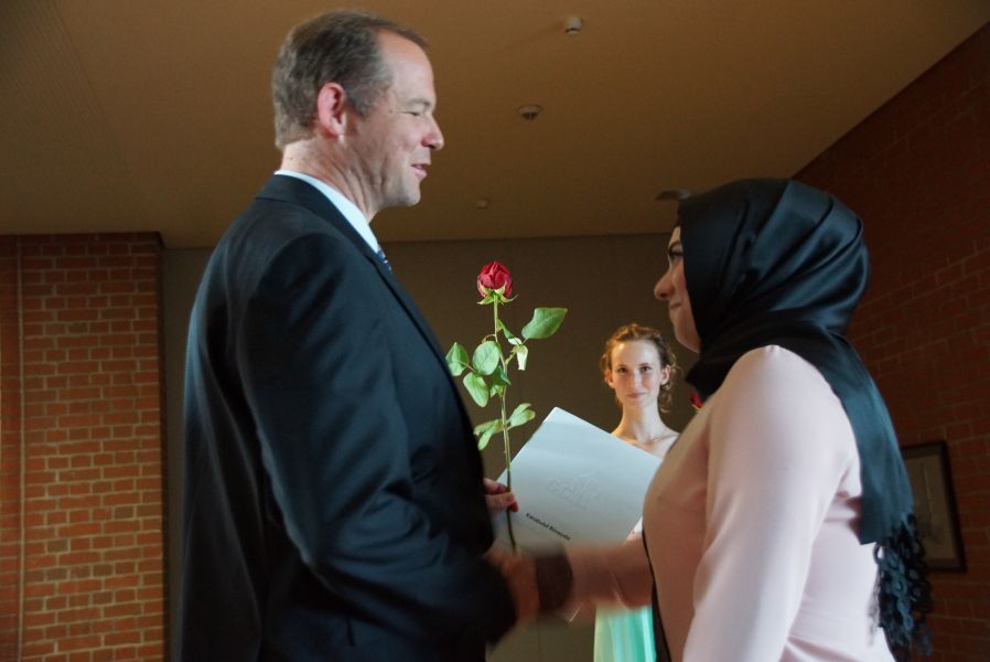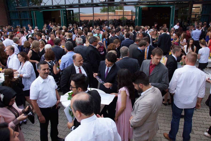 Der Elternbeiratsvorsitzende Faruk Durmaz und Oberstufenkoordinator Otto Farber verabschiedeten, ebenso wie schon ihre Vorredner, die 66 jungen Damen und ebenfalls 66 jungen Herren, mit den besten Glückwünschen.