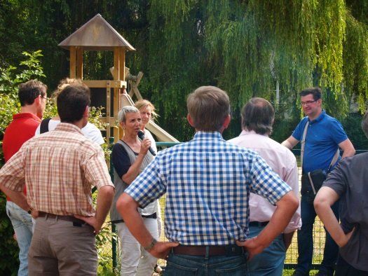 Mitdenken, mitreden, mitgestalten. Die Resonanz der Bürger bei diesem Ideenwettbewerb war wirklich riesig. Bei den Terminen am Vormittag und Nachmittag waren jeweils gut 50 Teilnehmer dabei. Lediglich am Abend waren es etwas weniger. Gestartet wurde immer am Marktplatz vor dem Rathaus, dann ging es in Richtung Spielplatz am Löschweiher hinter der Kirche, weiter am Bachwirt vorbei und entlang am Radweg beim Färbergraben. Von der Rennbahnstraße runter zur Hopfenhalle unter wieder rauf entlang der Hauptstraße zurück zum Marktplatz. Gut 2 Stunden waren die Gruppen jedes Mal unterwegs und machten an einzelnen Stationen halt um Einzelheiten zu besprechen und Vorschläge einzubringen.