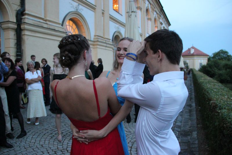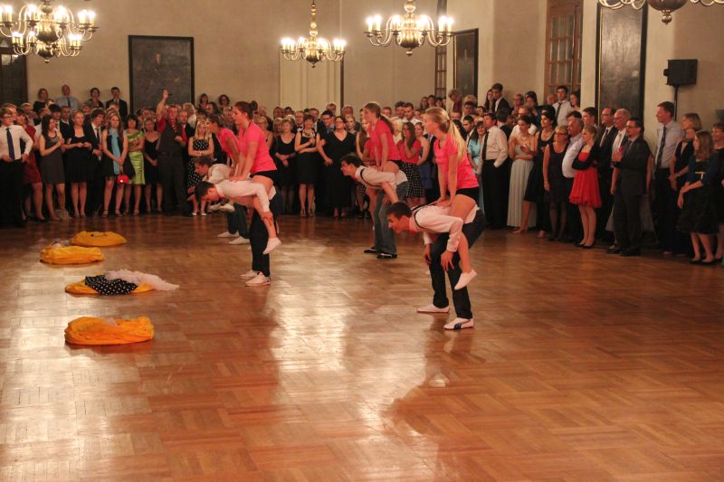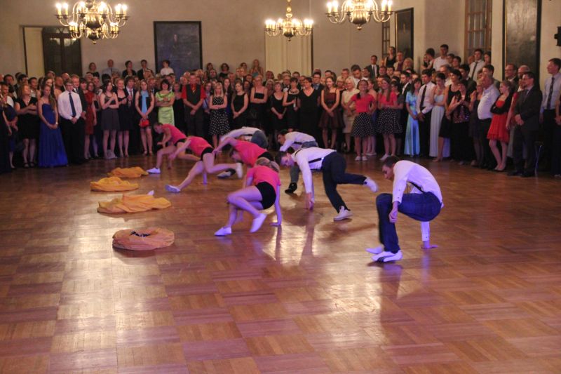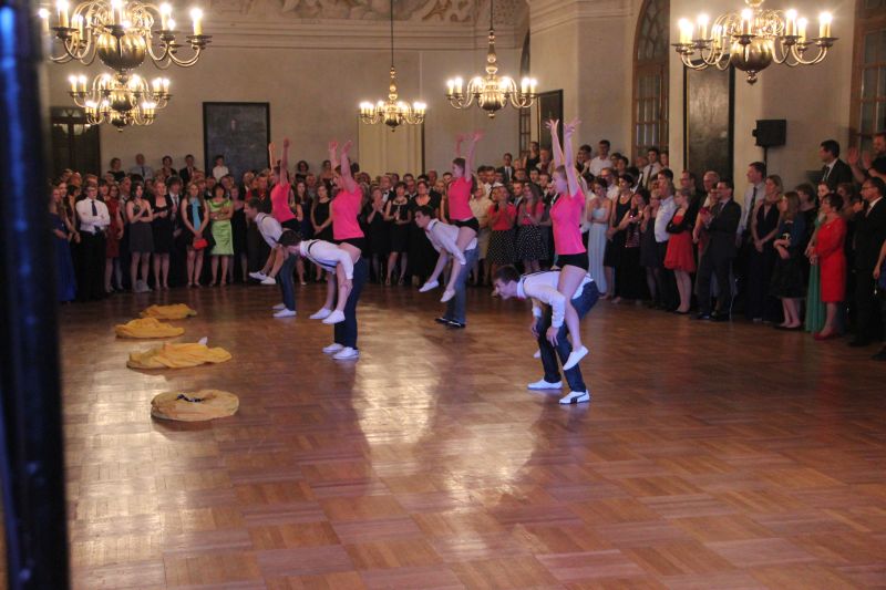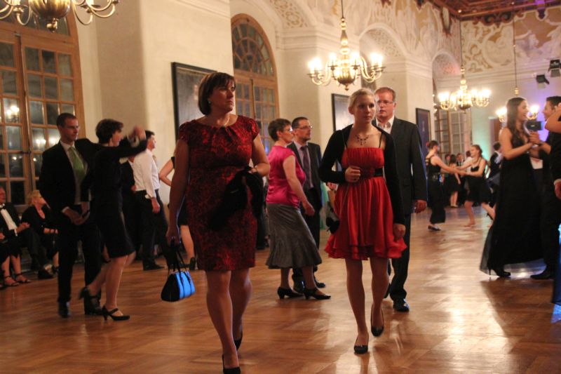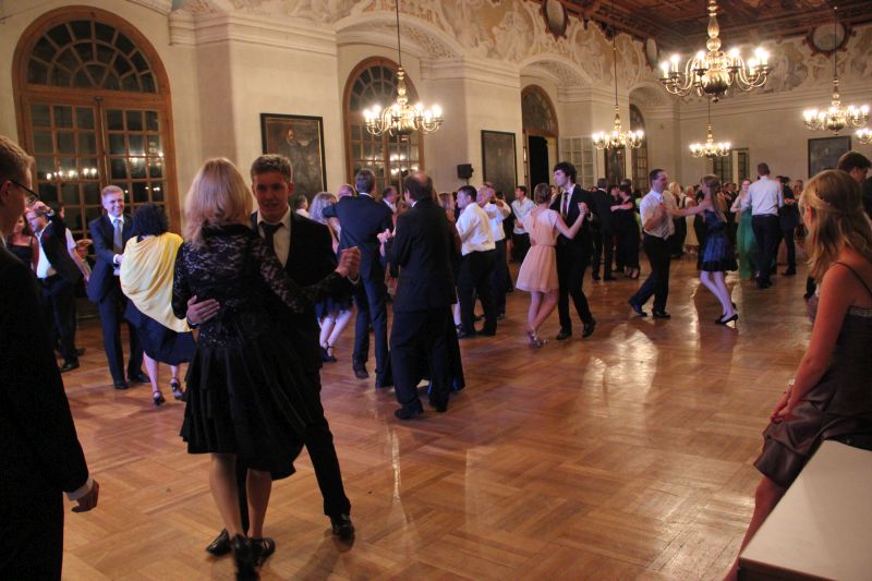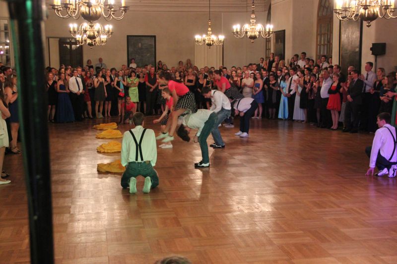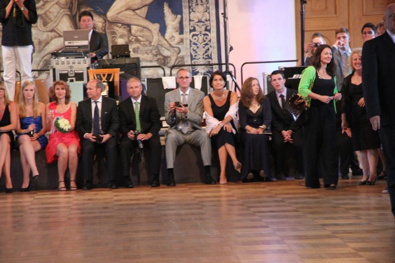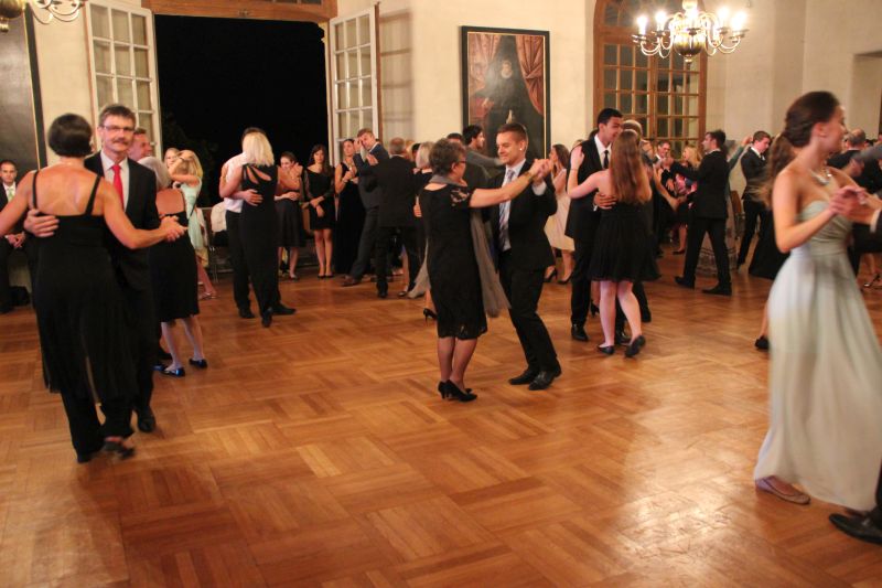 "In den einmaligen Räumlichkeiten des Schlosses Dachau werden seit Jahrhunderten rauschende Feste ausgerichtet, die in die Geschichte eingegangen sind." So heißt es in der Werbebroschüre der Schlossgastronomie. Zumindest für den Abi-Jahrgang 2014 des Schyren-Gymnasiums wird auch dieses Fest in die Geschichte eingehen. Mit einem Einzug der Abiturientinnen und Abiturienten begann die Abschlussparty, veranstaltet von der vhs-Dachau und Stephan Pokorny, die dann nach einer eher klassischen "Eintanzphase" letztendlich in einen rhythmischen und Foxtrott-getriebenen, in jedem Fall aber rauschenden Tanzabend überging, bei dem kaum jemand auf den wenigen bereitgestellten Stühlen sitzen blieb. Wem es im Festsaal dann aber doch zu heiß wurde, der begab sich auf die angrenzende Terrasse mit dem wunderschönen Blick in einen der reizvollsten Schlossparks Bayerns und weit über die Dächer Münchens bis in das Alpenvorland hinaus.