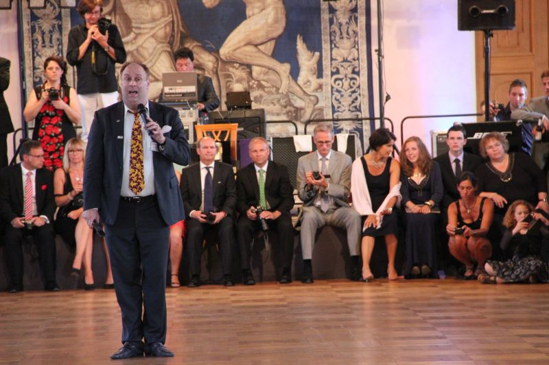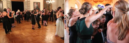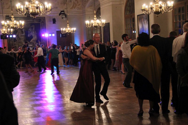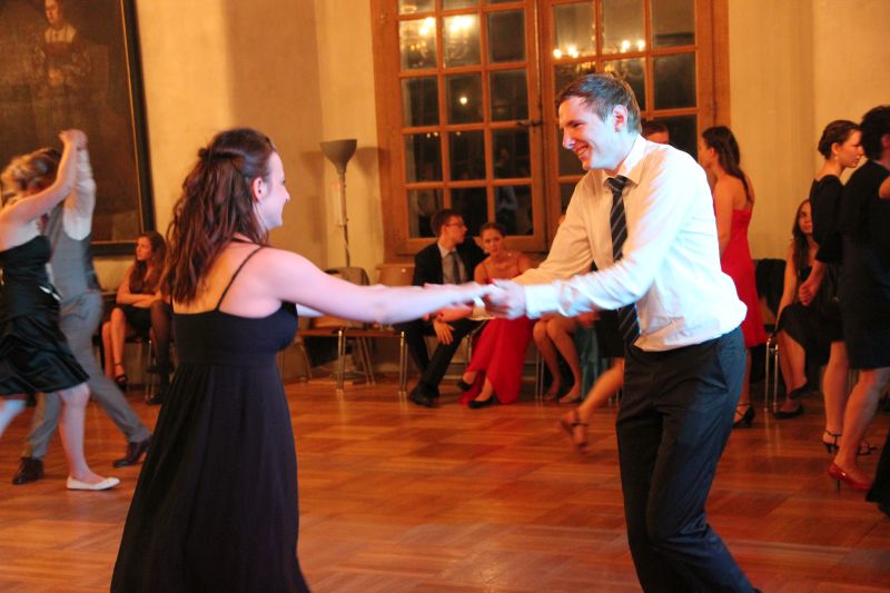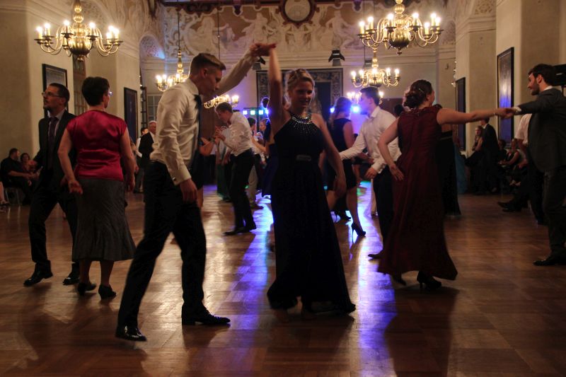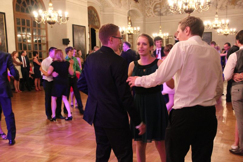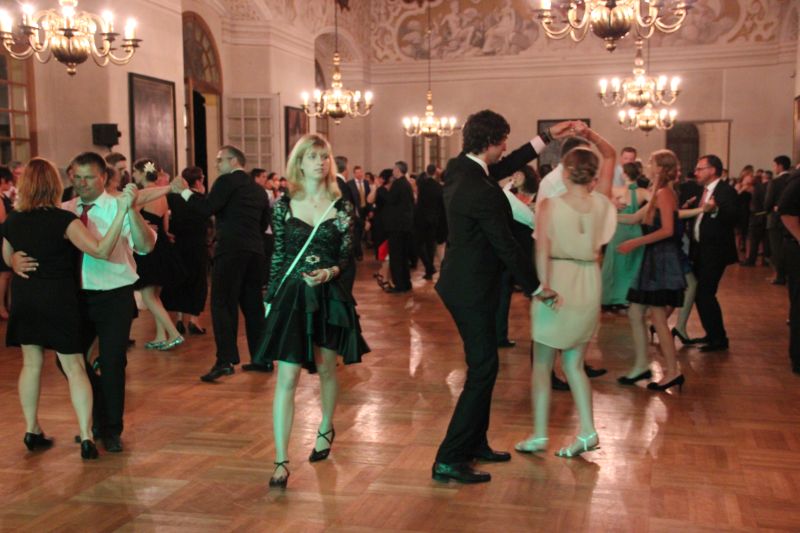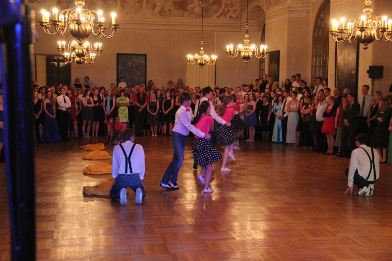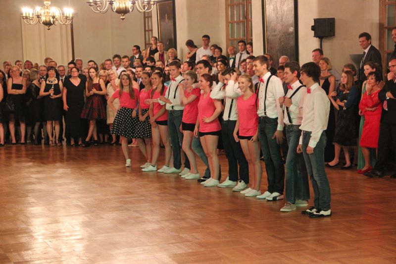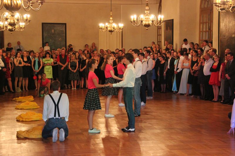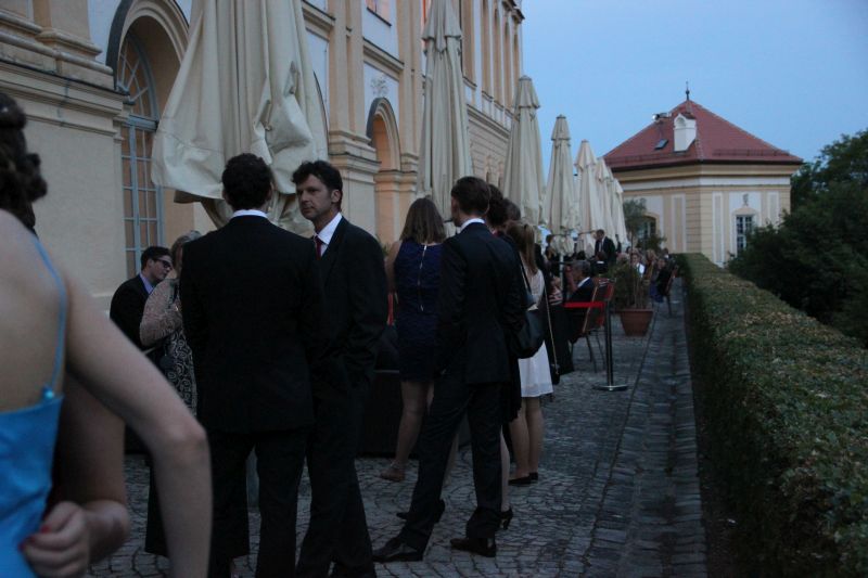"In den einmaligen Räumlichkeiten des Schlosses Dachau werden seit Jahrhunderten rauschende Feste ausgerichtet, die in die Geschichte eingegangen sind." So heißt es in der Werbebroschüre der Schlossgastronomie. Zumindest für den Abi-Jahrgang 2014 des Schyren-Gymnasiums wird auch dieses Fest in die Geschichte eingehen. Mit einem Einzug der Abiturientinnen und Abiturienten begann die Abschlussparty, veranstaltet von der vhs-Dachau und Stephan Pokorny, die dann nach einer eher klassischen "Eintanzphase" letztendlich in einen rhythmischen und Foxtrott-getriebenen, in jedem Fall aber rauschenden Tanzabend überging, bei dem kaum jemand auf den wenigen bereitgestellten Stühlen sitzen blieb. Wem es im Festsaal dann aber doch zu heiß wurde, der begab sich auf die angrenzende Terrasse mit dem wunderschönen Blick in einen der reizvollsten Schlossparks Bayerns und weit über die Dächer Münchens bis in das Alpenvorland hinaus.
