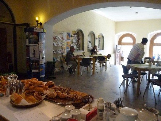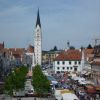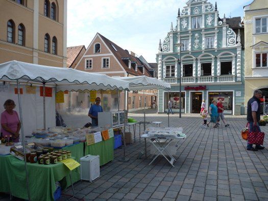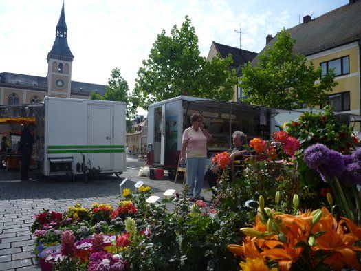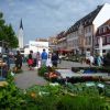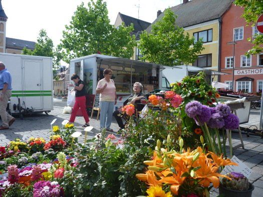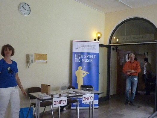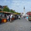 Hier spielt die Musik, in großen Lettern fand sich an vielen Stellen im Haus der Begegnung und dem unteren Hauptplatz, der Hinweis auf klangliches Erlebnis. Der Wochenmarkt war schon viel früher wach, die Beschicker hatten wieder einmal das Beste aufgeboten was die heimischen Gärten bieten konnten. Blumen und Kirschen, Erdbeeren und Gemüse, verwandelten den steingrauen Hauptplatz in ein expressionistisches Farbenmeer. Jedem Maler und Fotografen hüpft das Herz bei dieser Motivauswahl. So mancher Wochenmarktbesucher trägt mehr nach Hause als er geplant hat, Gelegenheit macht Liebe.