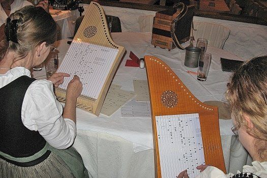 Ein variantenreicher Klang durchzog den Saal im Rohrbacher Gasthof Zeidlmaier als zwei Veeh-Harfen zum Einsatz kamen, die von Silvia Kaufmann und Beatrix Enzensbacher aus der Gruppe "Saitng'spann" gespielt wurde.