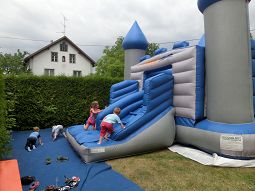 Dies alles trug nicht gerade zu einem Besucheransturm bei. Trotzdem machten sich einige Unverdrossene auf den Weg zum Dorfplatz und genossen da ein frisches Bier, Steaksemmeln, Räucherfisch, Käse, aber auch Kaffe und Kuchen. Vielleicht wäre mit einem Public Viewing mehr Andrang zu verbuchen gewesen, aber auch so machte sich der Veranstalter FC Bavaria Baumgarten alle Mühe. Auch für die Kleinen war gesorgt, eine große Hüpfburg lud zum Toben ein.