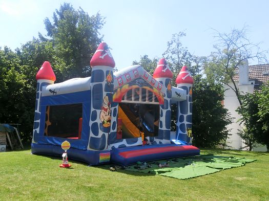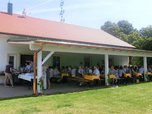 Auch für die Kinder war gesorgt - sie konnten im Blickfeld der Erwachsenen auf der großen Hüpfburg herumtoben. Diese ließen sich das Mittagessen und das frisch gezapfte Bier schmecken, ein Großteil blieb bis zum Nachmittag zu Kaffee und Kuchen.