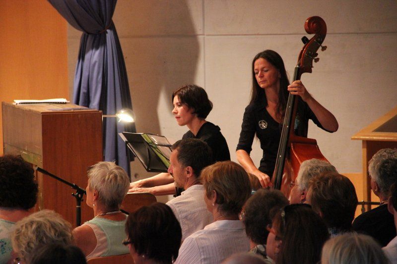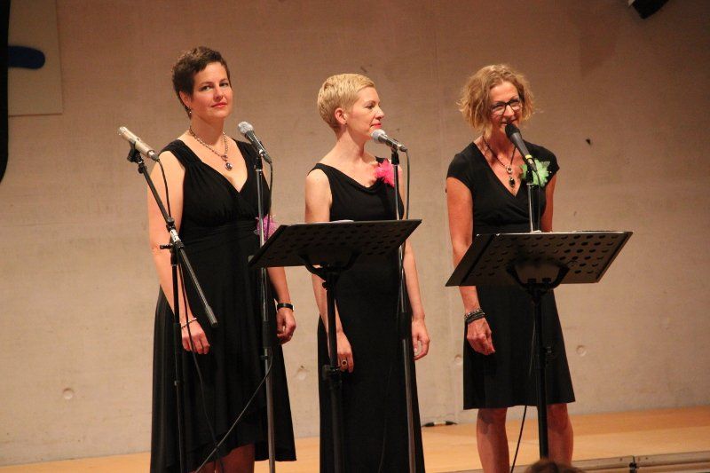 Der zweite Teil der Veranstaltung startete mit der dritten musikalischen Stilrichtung dieses Abends: The Gingernuts, das sind Gine Baumgärtner, Petra Kappelmeier und Sabine Obermaier (alle Gesang) sowie Angela Lugscheider (Piano) und Regina Chalupper (Kontrabass). "Popsongs, Filmmusik und Schlager" kündigte Christine Reimer an, "Lili Marleen" stand dabei ebenso auf der Setlist wie "Am Sonntag will mein Süßer mit mir segeln gehen", später auch noch "Route 66" und ein Abba-Medley. Musik aus einer längst vergangenen Zeit, dabei aber in jedem Fall zeitlos; Musik zum Zuhören, Mitsummen und manchmal zum Träumen.