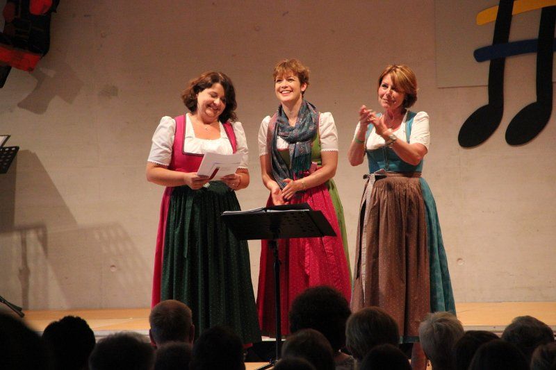 D'Wuidrosen übernahmen den zweiten Part des so unterschiedlichen Konzertes. Chorisma-Chorleiter Albin Scherer hatte die ersten musikalischen Gehversuche des Dreigesangs, der sich über die BR-Vorabendserie "Dahoam is dahoam" kennengelernt hatte, begleitet und unterstützt. Damals erging das Versprechen: als Dankeschön werden wir einmal einen gemeinsamen Auftritt durchführen. "Lassen Sie sich vor allem unterhalten, denn das ist unser Anspruch. Nicht mehr, aber auch nicht weniger." setzten Brigitte Walbrun, Christine Reimer und Daniela März den Maßstab von Beginn an. Mit drei bayerischen Volksweisen erfreuten sie die Konzertbesucher vor der Pause.