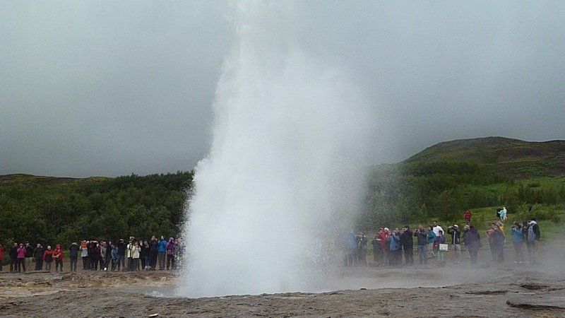 Ein weiterer Höhepunkt der Reise war die Fahrt in einem Amphibienfahrzeug durch eine Lagune mit treibenden Eisbergen, die von einer Gletscherzunge des größten Gletschers Europas, dem Vatnajökull, abgebrochen waren. Gewaltige Wasserfälle wie der Dettifoss stürzen über eine Breite von 100 Metern 50 m in die Tiefe und in der Gischt tut sich bei Sonnenschein ein faszinierender Regenbogen auf. Schließlich wanderte die Gruppe noch durch eine Schlucht, wo im Jahre 930 das erste demokratische Parlament ausgerufen wurde. Gleichzeitig befindet sich dort eine Erdspalte, wo sich die eurasische und die amerikanische Kontinentalplatte auseinander bewegt haben. Das vielleicht interessanteste Naturschauspiel dürfte allerdings der Geysir Strokkur gewesen sein, der in Abständen von gut fünf Minuten regelmäßig eine gewaltige dampfend heiße Wasserfontäne in den Himmel stößt. Nicht zu vergessen die Entspannungsbäder in den „Blauen Lagunen“ im Süden und Norden der Insel, wo das angenehm temperierte Thermalwasser aus den Tiefen der Erde gespeist wird.
