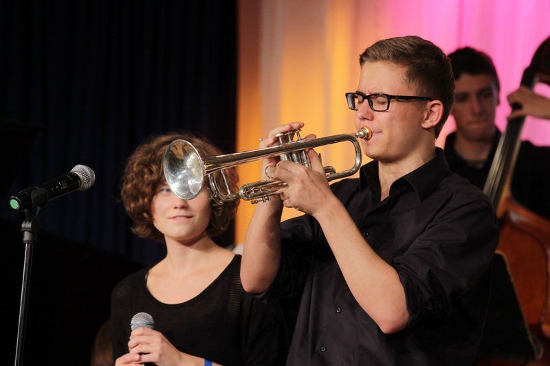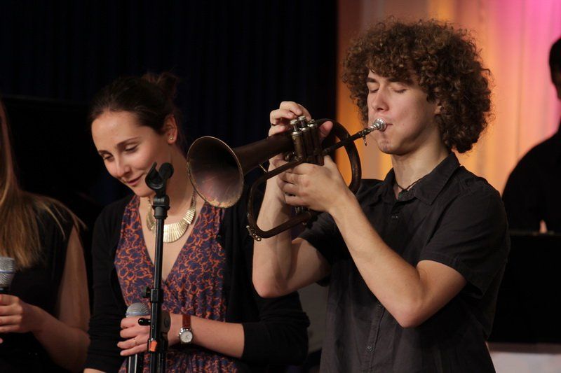 Die Aula des Hallertau-Gymnasiums war kaum wiederzuerkennen. Nicht wie gewohnt waren die Stuhlreihen aufgestellt, nein, der Konzertsaal verwandelte sich für eine kurze Zeit in einen kleinen Jazz-Club, in dem man bei ganz entspannter Atmosphäre den Klängen des Landes-Jugend-Jazz-Orchesters lauschen konnte.