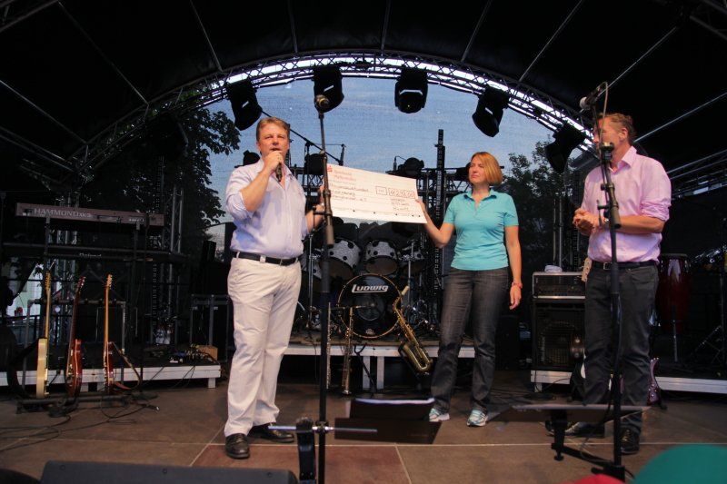 Aber bevor man gemeinsam mit der Miro Nemec Band so richtig abrocken durfte, stand noch eines auf dem Programm: die Scheckübergabe an Sternstunden, und auch da gab es einen neuen Rekord zu vermelden. Einen Scheck über 11.298 Euro konnte der Rathauschef der stellvertretenden Redaktionsleiterin der Abendschau Astrid Freyeisen überreichen. Und das Strahlen in den Gesichtern war auch hier riesengroß. „Das habt ihr alle zusammen erlaufen“, so Bürgermeister Jens Machold, der natürlich auch selbst wieder mit am Start war und die „Wolnzacher Wand“ zum wiederholten Mal bezwungen hat. Mit diesem Glücksgefühl im Rücken ließ es sich auf dem Marienplatz dann gleich doppelt feiern, denn nicht nur der Markt, sondern auch der Rathauschef feierten an diesem Tag Geburtstag.