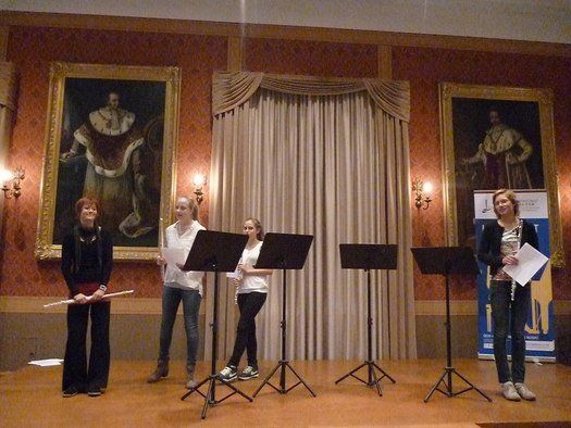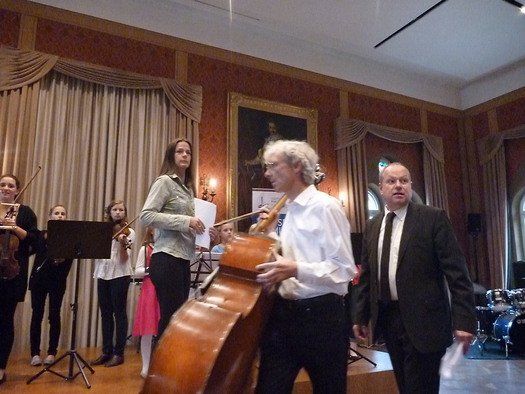 Doch vor diesem schönen Gruß hatte der Herr Auwi Geyer mit seiner Schulmannschaft noch ein schweißtreibendes Abschlussprogramm zusammengestellt. Fünfzehn einzelne, musikalische Leckerbissen, gespielt von Schülern und Lehrkräften, warteten darauf, von der großen Bühne im alten Rathaussaal gespielt zu werden.
