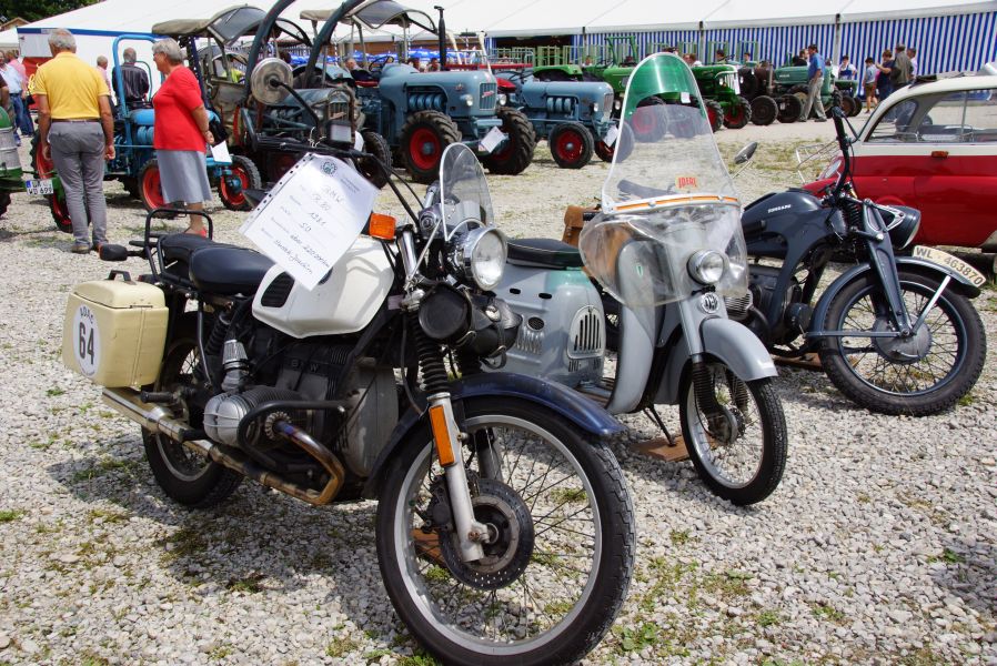 Am Sonntag bevölkerten Oldieliebhaber die Schöllwiese. Hauptattraktion waren die zum Teil fast 70-jährigen Bulldogs und davon vor allem Schlüter, Lanz und Eicher sowie einige Unimogs und ein ausgedientes Feuerwehrauto.
