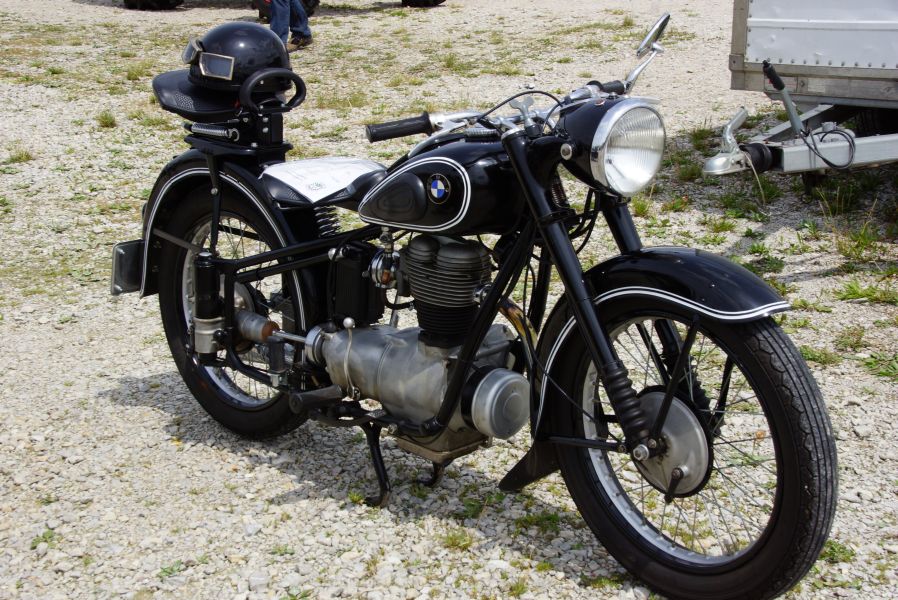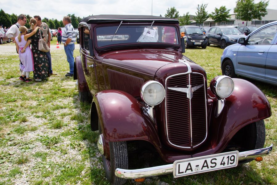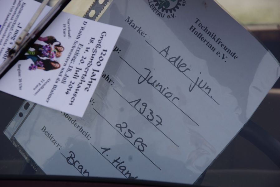 Einige wenige Oldie-Motorräder, die auch den Weg nach Mainburg gefunden hatten, wurden natürlich auch ausgiebig bestaunt, doch da war Berühren strengstens verboten. Ein richtiges Oldie-Automobil war ein Adler Junior, Baujahr 1937, mit grade mal 25 PS, der laut seines Besitzers auch noch aus erster Hand ist.