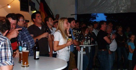 Veranstalter des Public Viewings war die Freiwillige Feuerwehr Rudelzhausen. Sie hatten in der Gemeindehalle bei allen Deutschlandspielen die WM live übertragen, mitgefiebert und natürlich auch mitgefeiert. Die Rudelzhausener Fußballfans zitterten gestern Abend genauso wie Millionen andere Deutsche mit und die Spannung bei diesem Finale war kaum mehr auszuhalten. Da war es auch ganz egal, ob das Bier schon leergetrunken war, Nachschub wurde erst in der Halbzeit geholt. Schnell noch eine Steaksemmel zur Nervenstärkung und weiter gings.