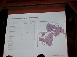 Herr Fritz vom Landratsamt erläuterte die Zwangslage, unter der sie stehen würden. Der immense Ansturm der Asylbewerber in Deutschland (12000 bis 14000 im Monat, davon 15.2% in Bayern) brächte alle in Zugzwang. 11 Asylbewerber würden jede Woche herbeigefahren und man müsste sehen, wo diese unterkommen. Gewerbegebiete, wie sie z.B. in Freising vorhanden wären, dürften nicht in Containern bewohnt werden. Natürlich wäre eine dezentrale Unterbringung wünschenswert, aber man sei auf Wohnangebote aus der Bevölkerung angewiesen. Auch der Pfarrer musste sich unangenehmen Zwischenrufen stellen, z.B. welchen Wohnraum die Kirche beisteuere. Er sagte, er hätte keine Informationen, welchen freien Wohnraum die Kirche hätte, aber sie würde sich auf alle Fälle für diese Menschen einsetzen. Er zeigte sich entsetzt, über den ablehnenden und unmenschlichen Ton, der teilweise herrsche.