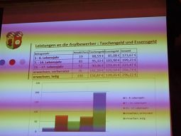 Von Anfang an unterbrachen immer wieder wütende Zwischenrufe die Ausführungen, es wurde immer wieder auf die anschließende Diskussion verwiesen. Eugen Altmann übernahm für den stimmlich gehandikapten Bürgermeister die Erklärung über den Verlauf der letzten Wochen. So wusste z.B. die Gemeindeverwaltung nicht, dass es sich bei der eingereichten "Wohnraumerweiterung" in der Hauptstr.24 in Wirklichkeit um eine Asylbewerberunterkunft für 34 Personen handle. Nachdem das Landratsamt zugestimmt hatte, sei es für die Gemeinde unmöglich, ein Veto einzulegen.