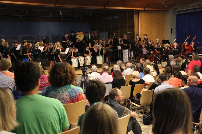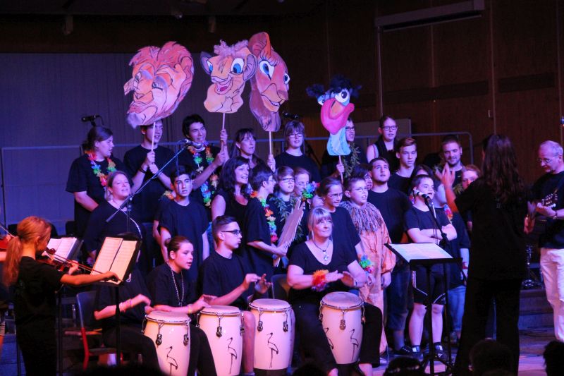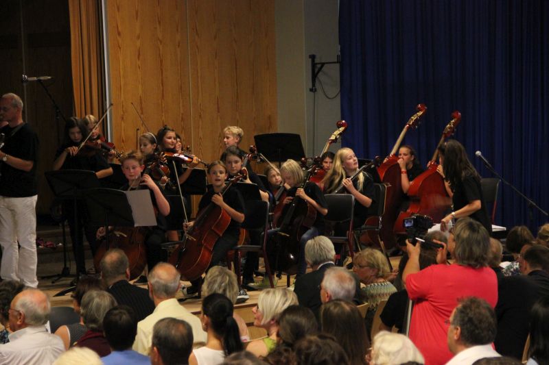 Gleich der erste Teil der Aufführung war Beweis für die Offenheit der Musikverantwortlichen am SGP. Mit zwei Stücken aus dem Musical "König der Löwen" spielten sich die Streicherklasse 5a unter der Leitung von Christiane Sauer gemeinsam mit Schülern der Adolf-Rebl-Schule (Sonderpädagogisches Förderzentrum Pfaffenhofen) in die Herzen des Publikums. Es war schon zu diesem frühen Zeitpunkt des Konzerts beeindruckend, mit welchem Einsatz, mit welcher Freude, aber auch mit welchem musikalischen Talent und Rhythmusgefühl die jungen Musiker dem Publikum entgegen traten.