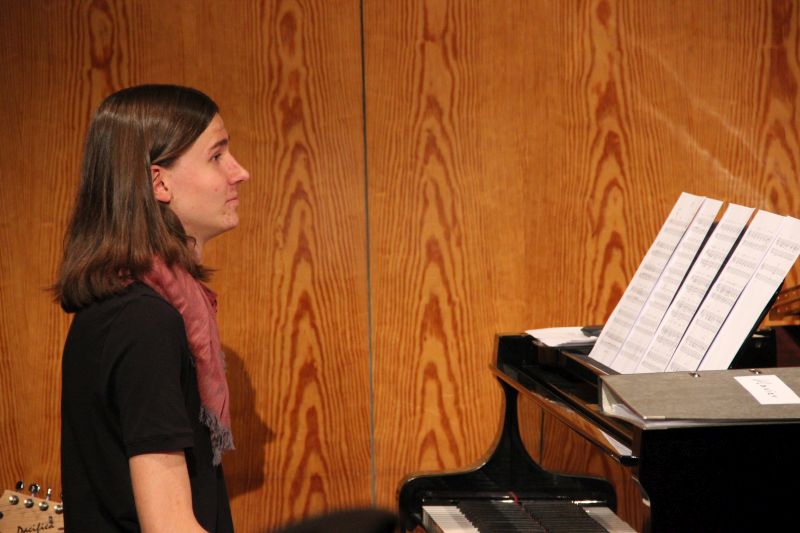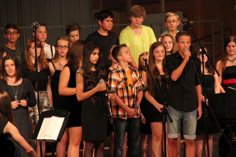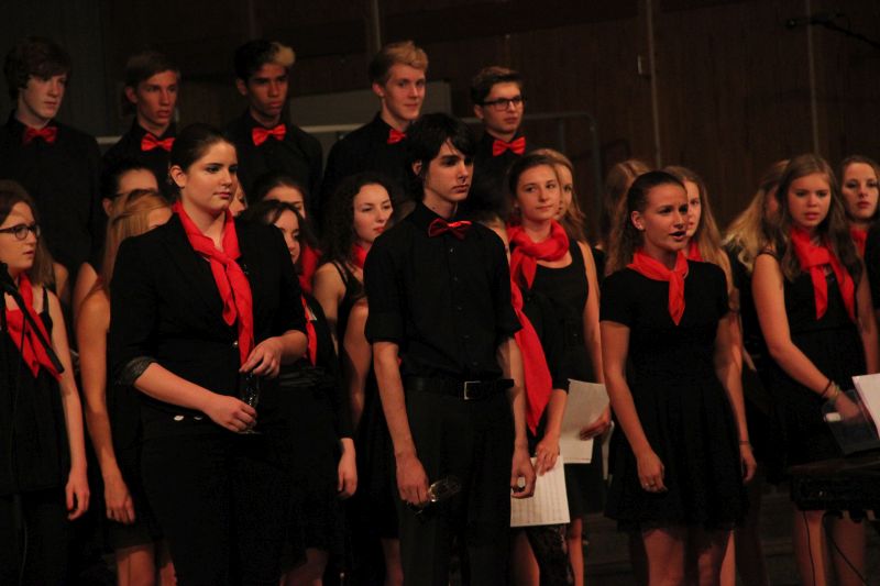 Im weiteren Programm folgten Auftritte des Unterstufenchors unter der Leitung von Julian Oswald - im Ohr hängen geblieben hierbei ganz besonders "Royals" mit diesen fantastischen Wechseln der Stimmlagen - und des Schulchors von Stephan Daubner, der mit Sofia Ritthammer, Jakob Grüner und Marie Ardey drei erstklassige Solisten präsentieren konnte. Zwischen den Chören wurde mit "We are the World", vorgetragen von der Klasse 7b, einer der erfolgreichsten Musiker überhaupt gehuldigt, Michael Jacksons Todestag jährte sich vor gut 2 Wochen zum 5. Mal.