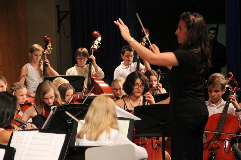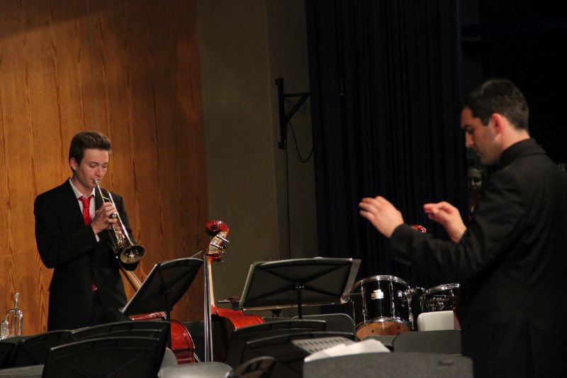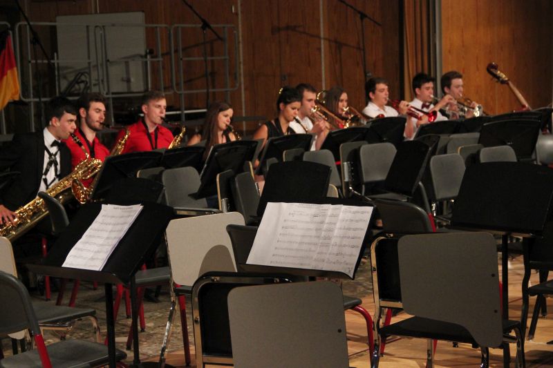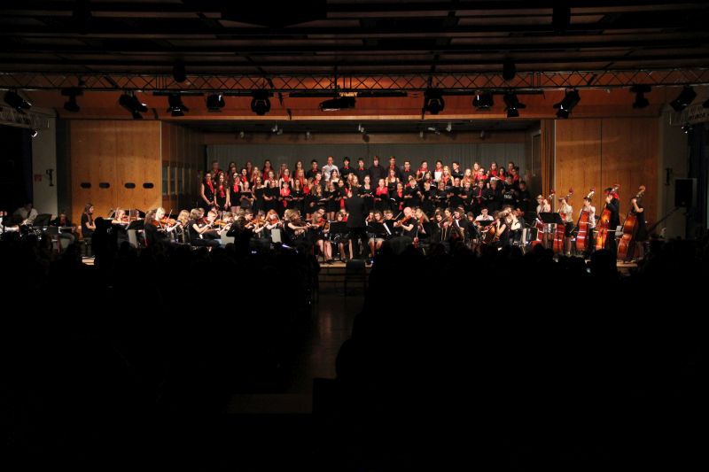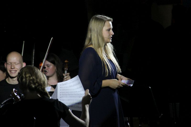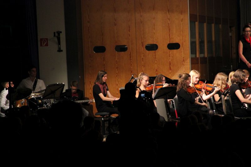 Von der Streicherklasse 6a über das sogenannte Vororchester ging es nach der Pause Schritt für Schritt zum großen Finale über: die - so Moderatorin Lena Lieberum, die gemeinsam mit Johannes Penger frisch und locker durch das Programm führte - momentan etwas geschrumpfte Big Band entführte die Zuhörerschaft zunächst nach Spanien ("Malaguena"), Portugal ("Mas que nada") und in den Soul der Vereinigten Staaten ("I want you back"), bevor das große Orchester gemeinsam mit der Big Band zur "Star Wars: Episode II" in die Sphären des Weltalls abhoben. Einfach pompös und bombastisch, was dort auf der Bühne zusammengebracht wurde.
