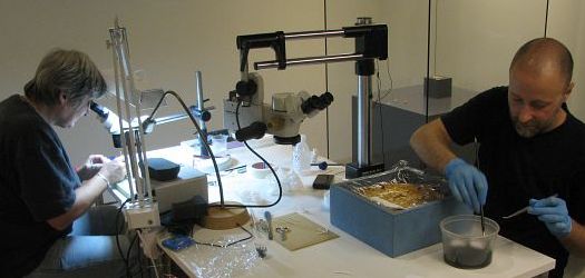 Noch wenige Tage sind es bis zur Eröffnung der nächsten Sonderausstellung "Das Goldene Antlitze des unbekannten Makedonenkönigs" im kelten römer museum manching am 23.7.2014. Der Ausstellungsraum des kelten römer museums verwandelte sich diese Woche für einige Tage in eine hochgesicherte Spezialwerkstatt für die Arbeit der Restauratoren des Römisch-Germanischen Zentralmuseums Mainz.