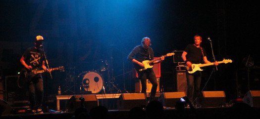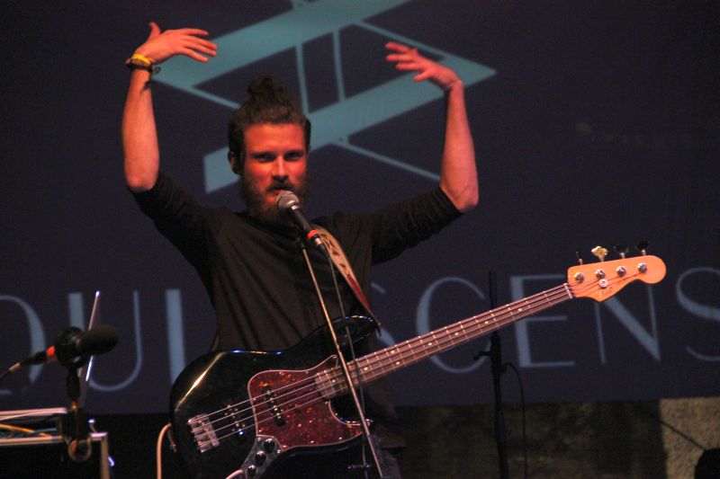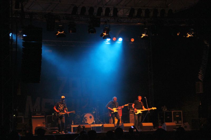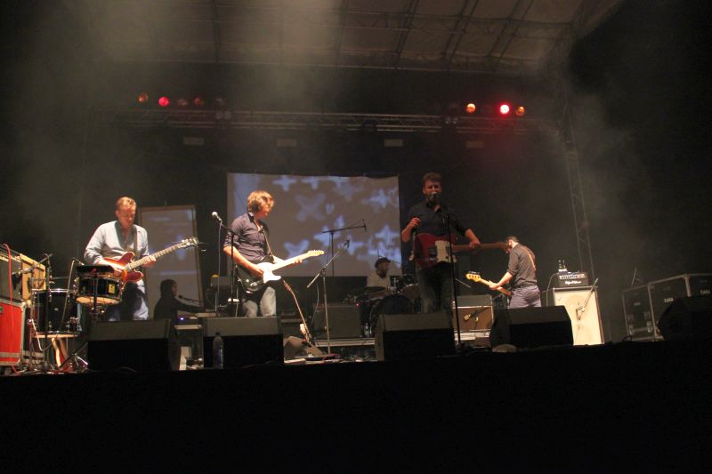 Unbestrittener Haupt-Act des Freitags waren Slut aus Ingolstadt. 20 Jahre Bühnenerfahrung, Tourneen und Studioatmosphäre waren allgegenwärtig. Ohne große Vorreden und Ankündigungen ging es los mit Stücken aus ihrer 2013er CD „Alienation“ und einem bunten Querschnitt ihrer Schaffensperioden. Die Schriftstellerin Julie Zeh hat über Slut und ihre Musik einmal gesagt: „Die Lieder brechen mit dem klassischen Song-Schema, wechseln die Richtung, überraschen mit immer neuen Einfällen und bewahren trotzdem ihren Ohrwurmcharakter.“ Und genau das trifft es: Slut wechseln Tempi, überraschen mit Brüchen in der Melodie und integrieren unterschiedlichste Soli, ohne dabei an Durchgängigkeit und Wiedererkennungswert zu verlieren. Hinzu kommt eine bemerkenswerte Ausstrahlung von Frontmann und Sänger Christian Neuburger, der gar nicht viel machen muss und dennoch die Fans in den Bann zieht.