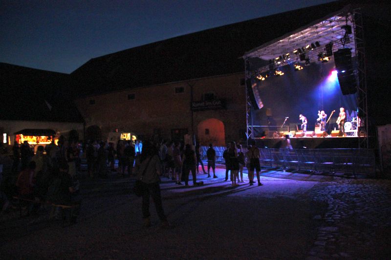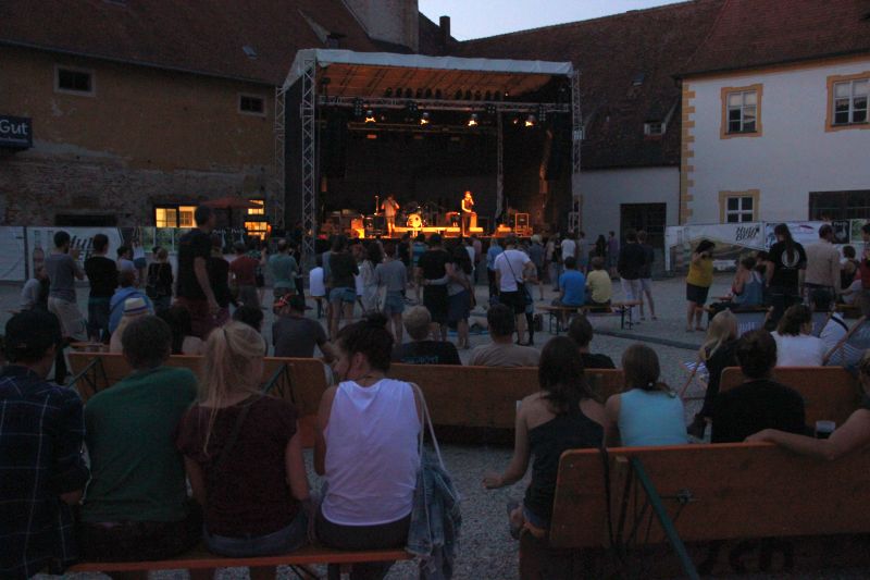 Und die Premiere kann sich sehen lassen. Ein abwechslungsreiches Programm ohne Längen – jede Band spielt maximal eine Stunde – mit ambitionierten ebenso wie bühnenerprobten Musikern haben die Macher zusammengestellt. Es war noch hell und richtig warm am späten Freitagnachmittag, als A Home A Heart Whatever aus Augsburg mit etwas Verspätung gegenüber dem ursprünglichen Programm die Bühne betraten. Die Elektrik im altehrwürdigen Vierseithof hatte den Technikern anfangs noch ein paar Sorgen bereitet. Ludwig Van folgten im Programmablauf, aus dem höchsten Norden der Republik angereist, aus Flensburg nämlich. Paper & Places wiederum hatten es nicht ganz so weit, aus Regensburg nach Scheyern gekommen präsentierten sie einen ruhigen, melodischen Indie-Rock, etwas zum Zuhören, bevor der Sound mit Zach Mathieu aus Schrobenhausen wesentlicher härter wurde.