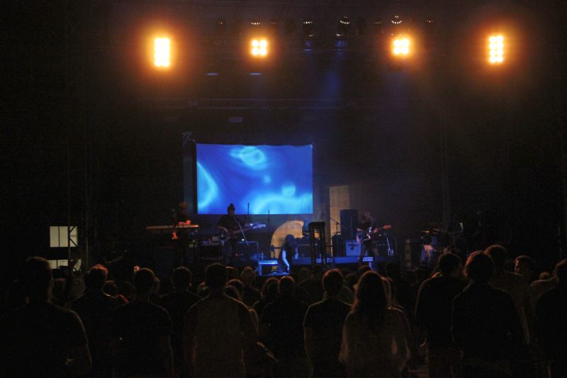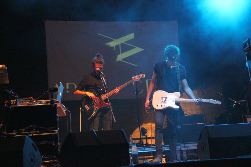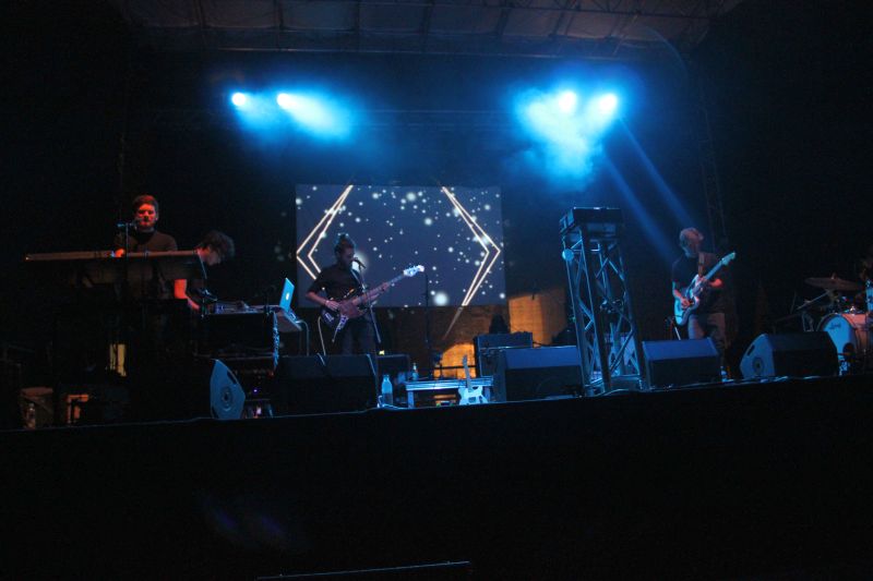Ohne den vorgenannten Bands zu nahe treten zu wollen, waren sie dennoch in erster Linie der Aufgalopp zu den beiden Top-Acts des ersten Festival-Tages. Adulescens mit ihren etwas sphärischen Synthie-Klängen, dem wunderbaren Gesang der beiden Maximilians, nämlich Maximilian Wallner und Maximilian Wörle und last but not least einer beeindruckenden Lightshow mit Laser und LED. "Ihr seid ja doch mehr Besucher, als man von unten so meinen würde." begrüßten die Aichacher ihre Fans. In der Tat scheinen einige der Besucher erst später am Abend in den Prielhof gekommen zu sein, denn gegenüber dem früheren Abend füllte sich das Areal jetzt doch ein wenig.