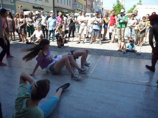 Nach dem Motto: „Tanz in den Sommer“ hat sich die Fläche vor dem Rathaus Pfaffenhofen an diesem Samstag in eine große Tanzbühne verwandelt. Die Tanzschule Scherg Pfaffenhofen bot nicht nur ihre rührigen Stepdamen auf, auch die Jugend veranstaltete einen „Breakdance Contest“.