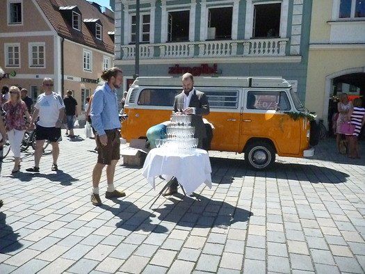Im Rathaus wurde eine Ausstellung zur Wiedereröffnung des Bunkers in Pfaffenhofen geboten und Altbürgermeister Hans Prechter war bei seiner Pfaffenhofen Tour zu bewundern. Stadtführungen in einer 24 000 Einwohner Stadt, sie funktionieren, trotz aller anfänglicher Unkenrufe, erstaunlich ist dabei die hohe Anzahl an Alteingesessenen. Eine große Hochzeitsgesellschaft mischte sich auch noch unter das Gewurle vor dem historischen Rathaus und beim „Heimer“ konnte ein Junggesellinnen Abschied bewundert werden.