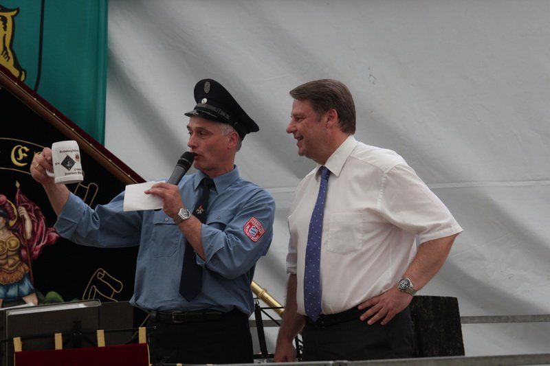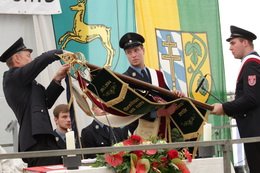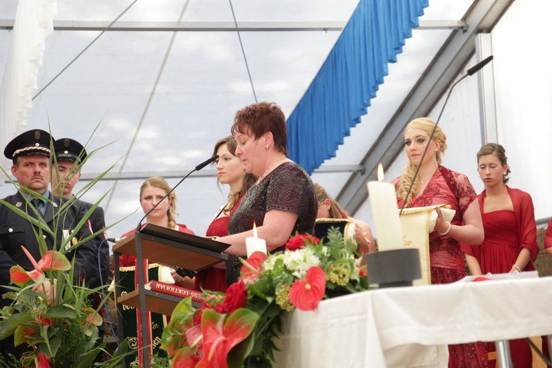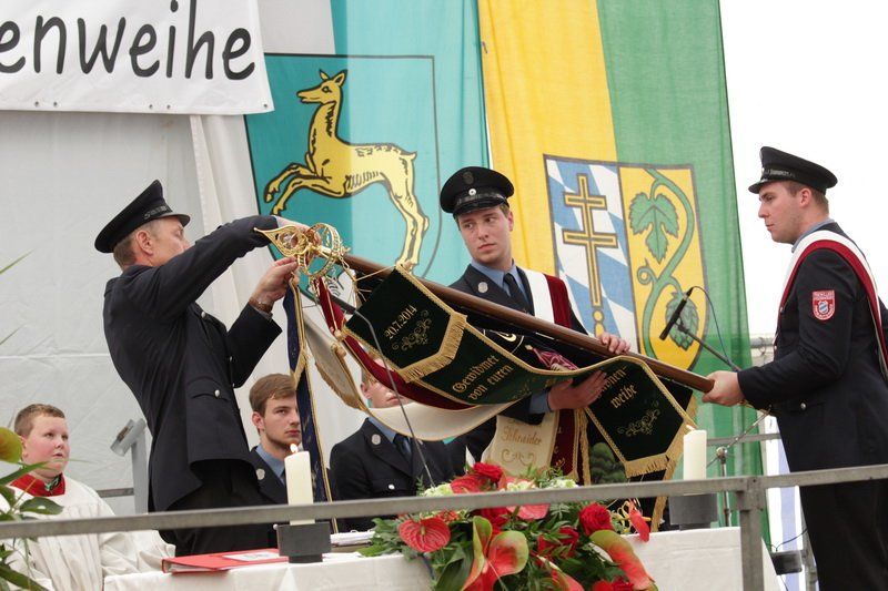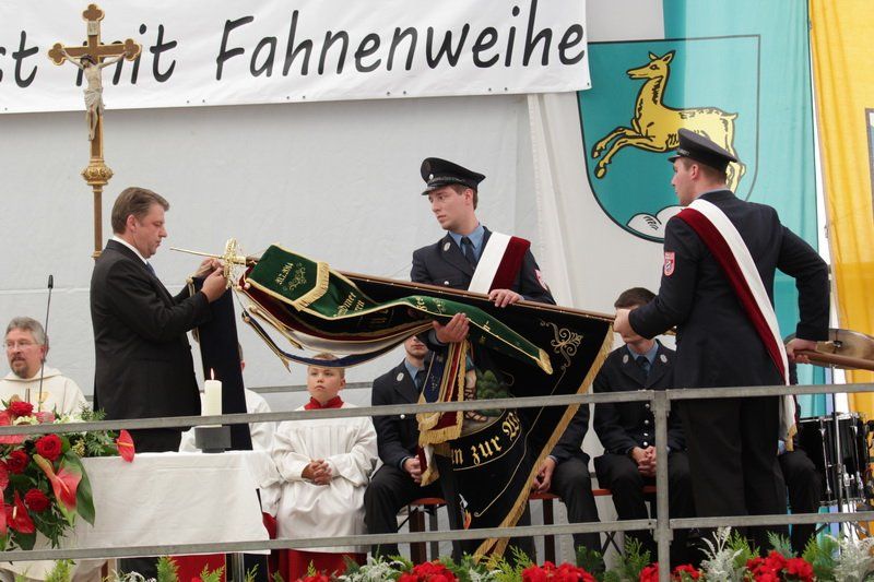 „Wir feiern heute ein großes Feuerwehrfest mit Fahnenweihe“, begrüßte Gemeindepfarrer Thomas Schießl die Festgemeinde und wandte seinen Blick aber dann weniger auf die Feierlichkeiten, sondern auf die ehrenamtliche Arbeit, die Tag für Tag von den Floriansjüngern verrichtet wird. „Ohne diese freiwilligen Helfer würde unsere Gesellschaft nicht funktionieren.“ Auch Schirmherr Bürgermeister Jens Machold, Landrat Martin Wolf und Kreisbrandrat Armin Wiesbeck betonten in ihren kurzen Ansprachen das Ehrenamt.