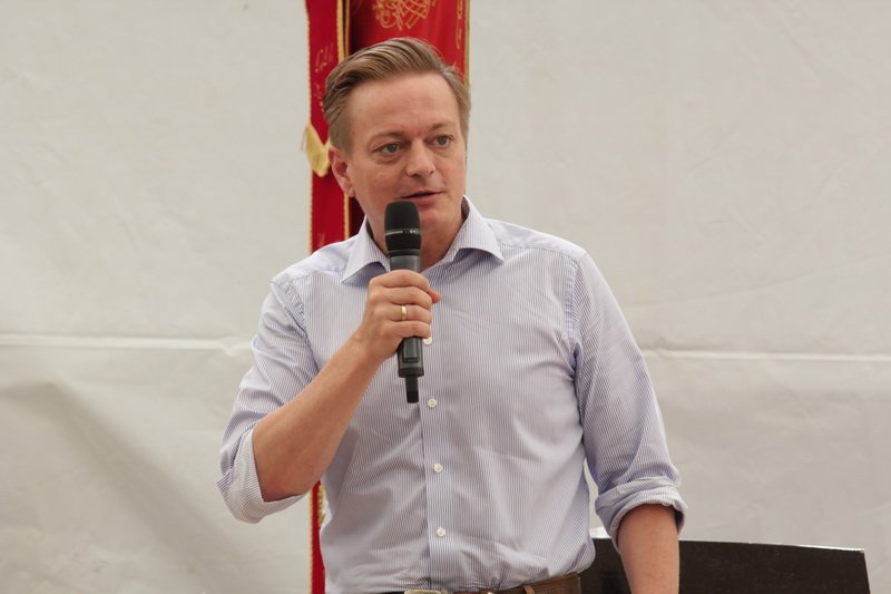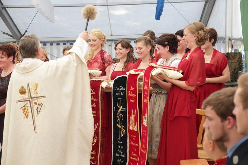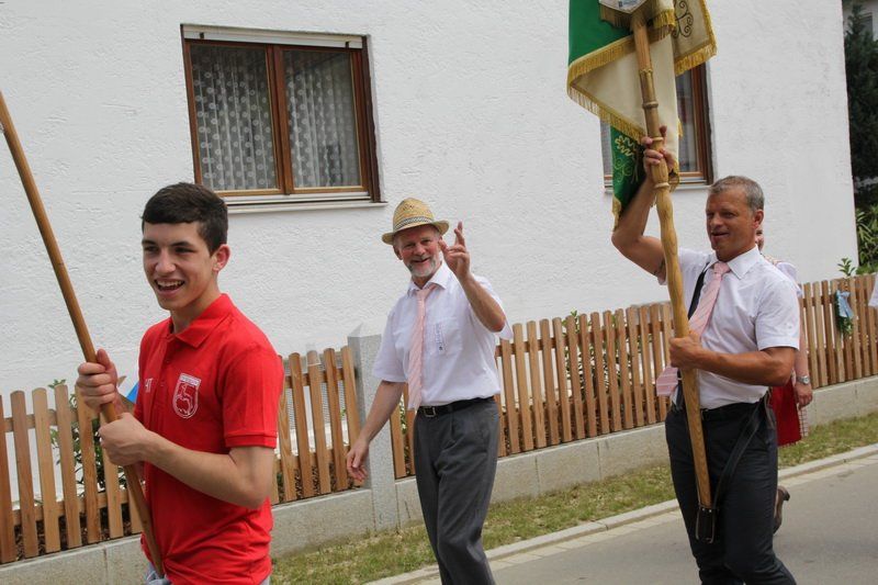 Auch wenn Bürgermeister Jens Machold ein neues Fahrzeug im Gepäck hatte, so stand an diesem Tag der zweite Aspekt, den Pfarrer Thomas Schießl in seiner Predigt ansprach, im Vordergrund – die Gemeinschaft. Über 90 Vereine waren ins kleine Oberlauterbach gekommen, um nicht nur gemeinsam die Fahnenweihe zu feiern, sondern auch, die Gemeinschaft zu pflegen. „Gemeinsam sind wir stark“, so Schießl, der sich für die Zukunft wünscht, dass sich die Dorfgemeinschaft zu vielen Anlässen hinter dieser Fahne versammelt. Auch Landrat Martin Wolf betonte, wie wichtig Zusammenhalt ist.