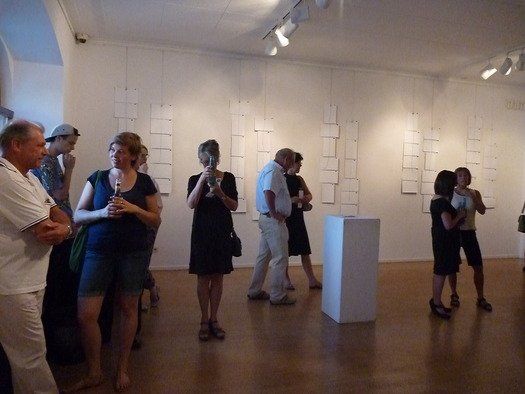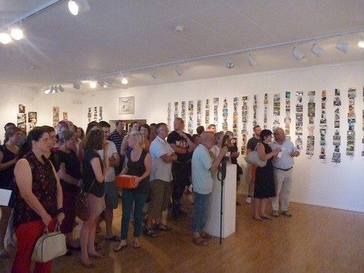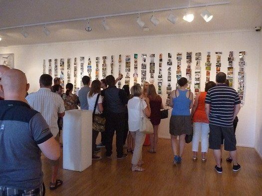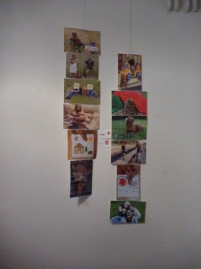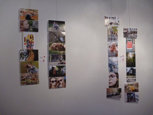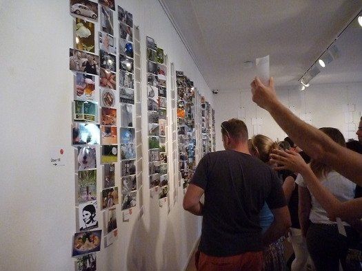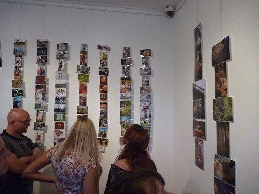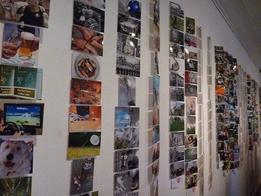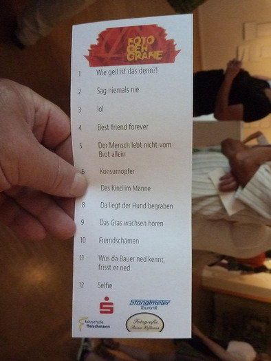 Kleine Handzettel mit den Sprüchen 1. Wie geil ist das denn? 2. Sag niemals nie 3.lol 4. Best friend forever 5. Der Mensch lebt nicht vom Brot allein 6. Konsumopfer 7.Das Kind im Manne 8.Da liegt der Hund begraben 9.Das Gras wachsen hören 10.Fremdschänen 11.Wos da Bauer ned kennt, frisst er ned 12 Selfie , liegen als Gedächtnisstütze für den Betrachter bereit. Die jeweils 12 Fotos, insgesamt sind es 456, hängen gekonnt arrangiert an den weißen Galeriewänden.