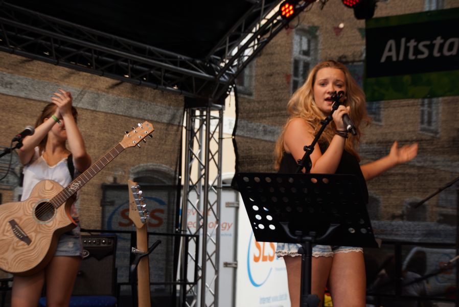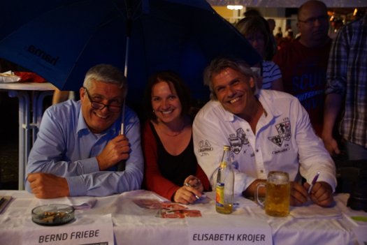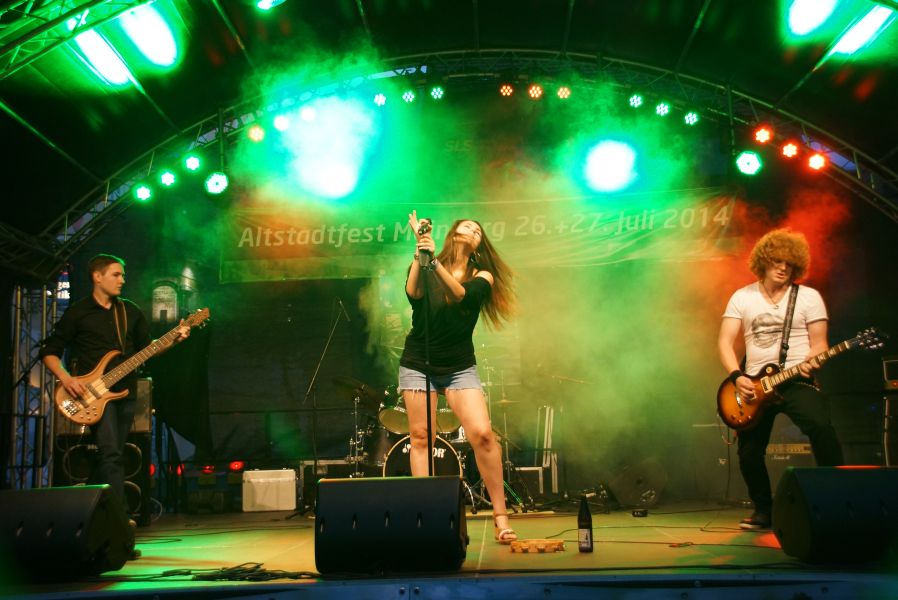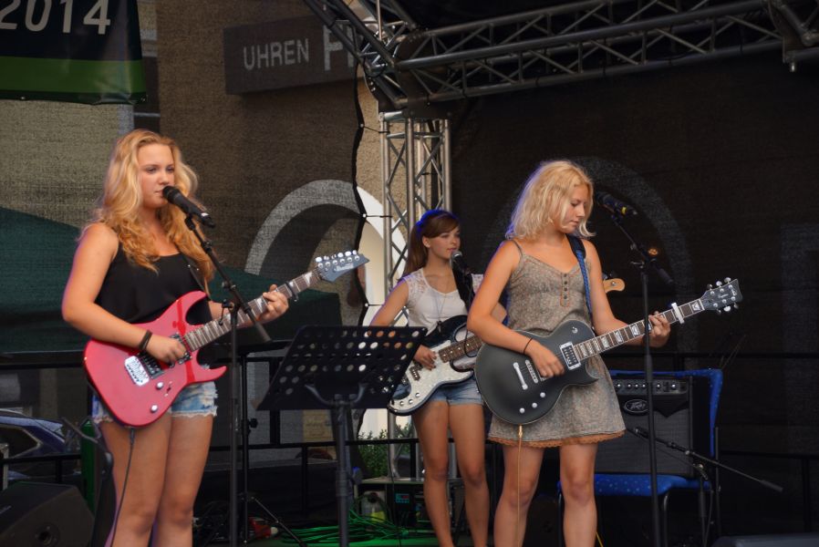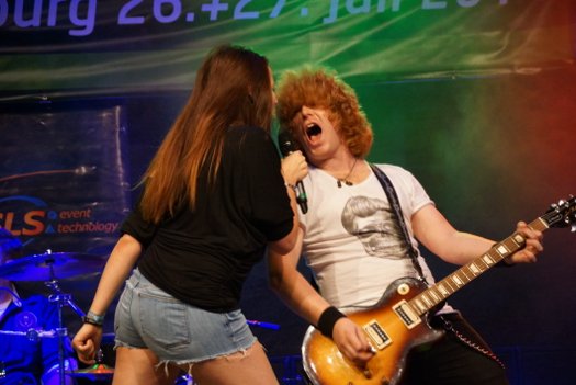 Das ganze Vorsingen dauerte etwas länger als geplant und die Befürchtung, nass zu werden, wurde immer größer. Die erste Band im Bunde „WildOnes“ schaffte ihren sensationellen Auftritt aber noch regenfrei. Sie rockte auf der Bühne fast wie die guten alten AC/DC. Besonders Bassist Georg erinnerte stark an die Kultband und die Sängerin Inge hatte mit ihrem braven Namen nichts gemein.