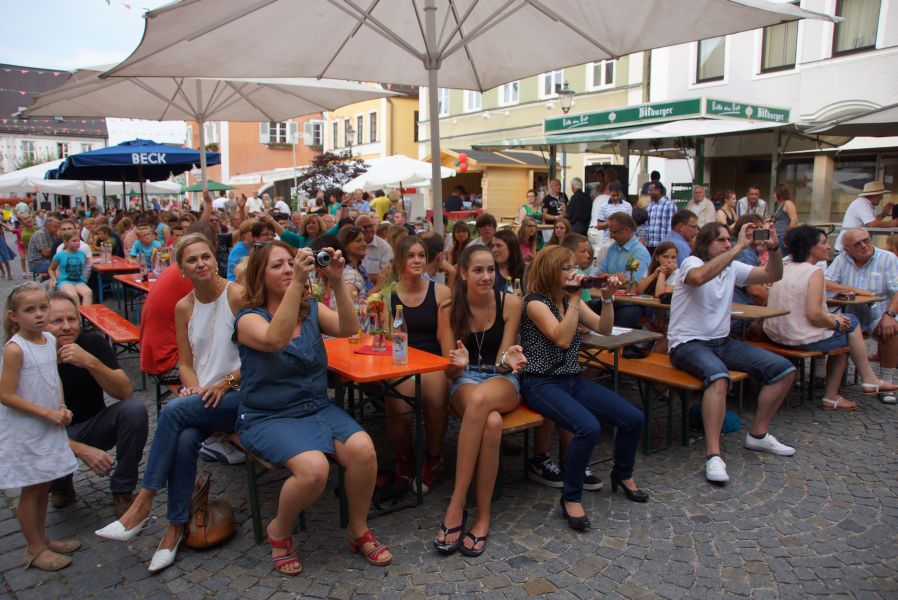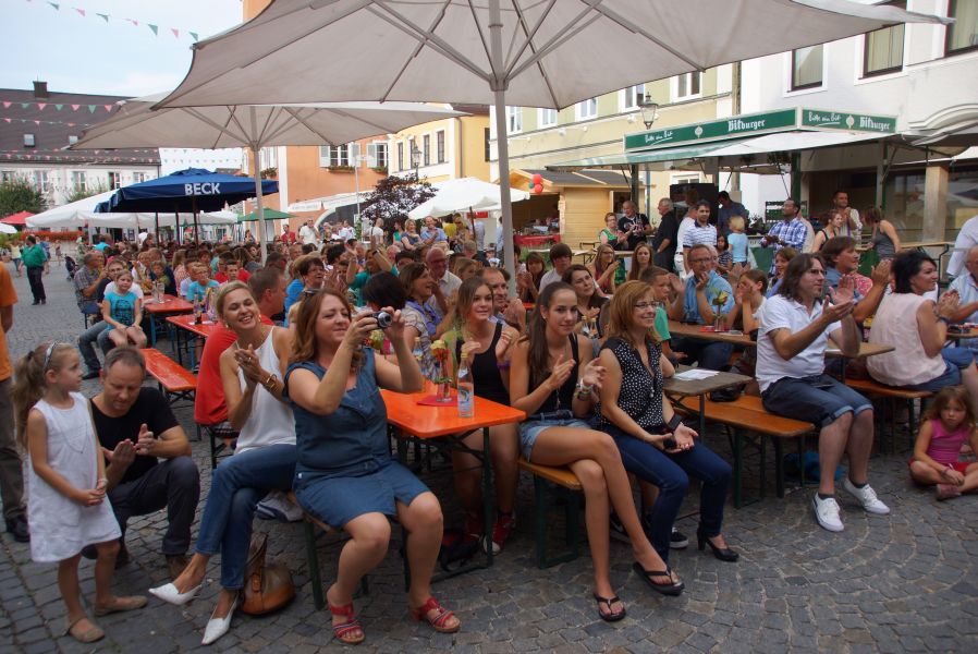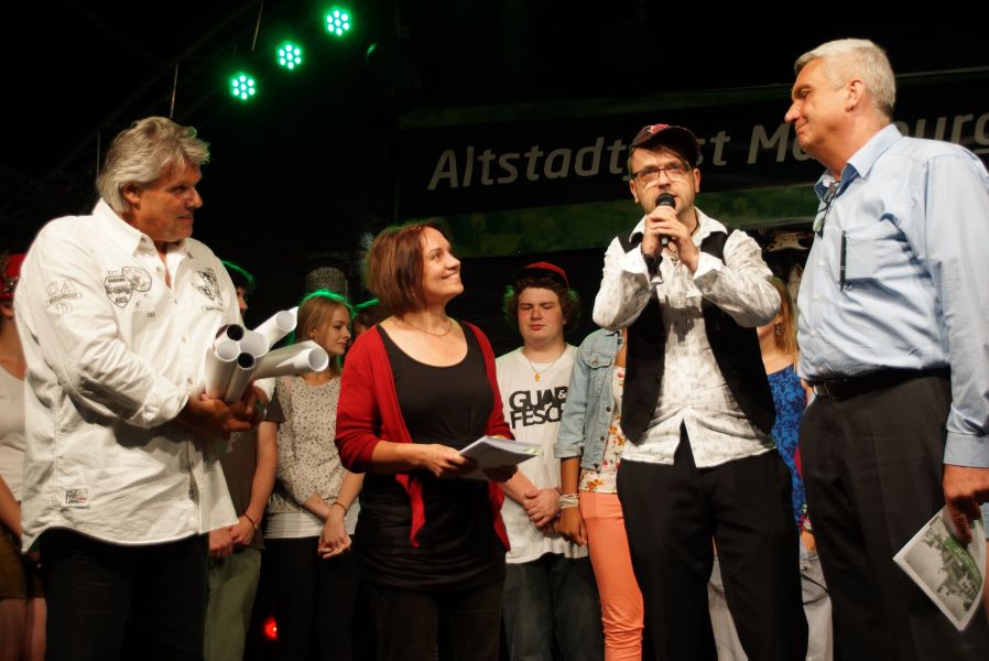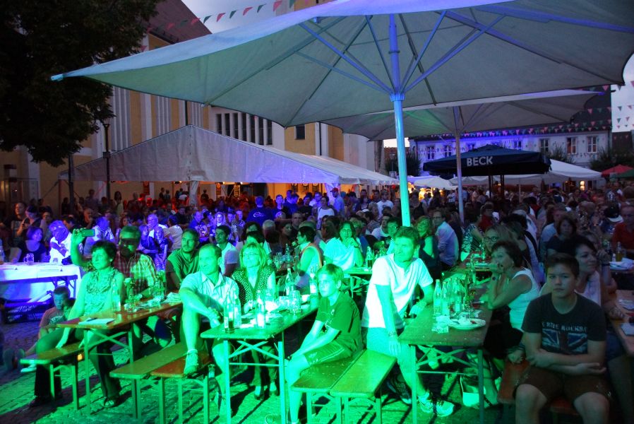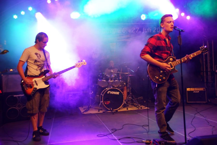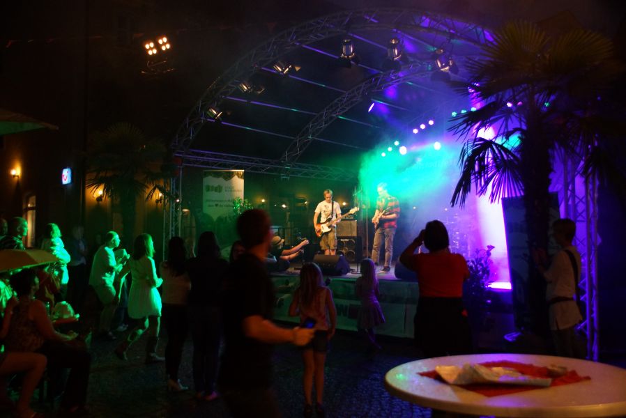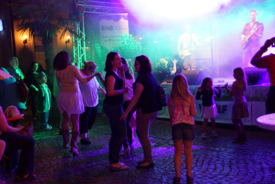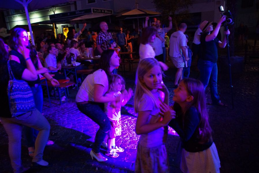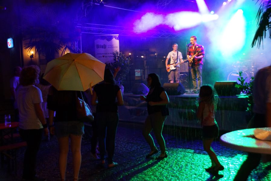 Der Aufritt der „Mad the Gun“ folgte zeitgleich mit einem kräftigen Regenschauer. Man hätte meinen können, dass der Marktplatz innerhalb kürzester Zeit verwaist wäre, aber nein, im Gegenteil. Zahlreiche Besucher tanzten bei strömendem Regen vor der Bühne, es wurde sogar nach einer Zugabe verlangt.