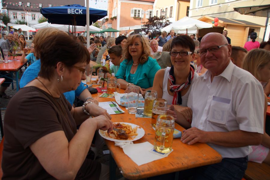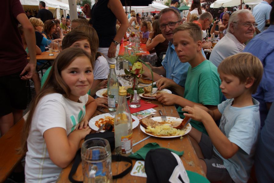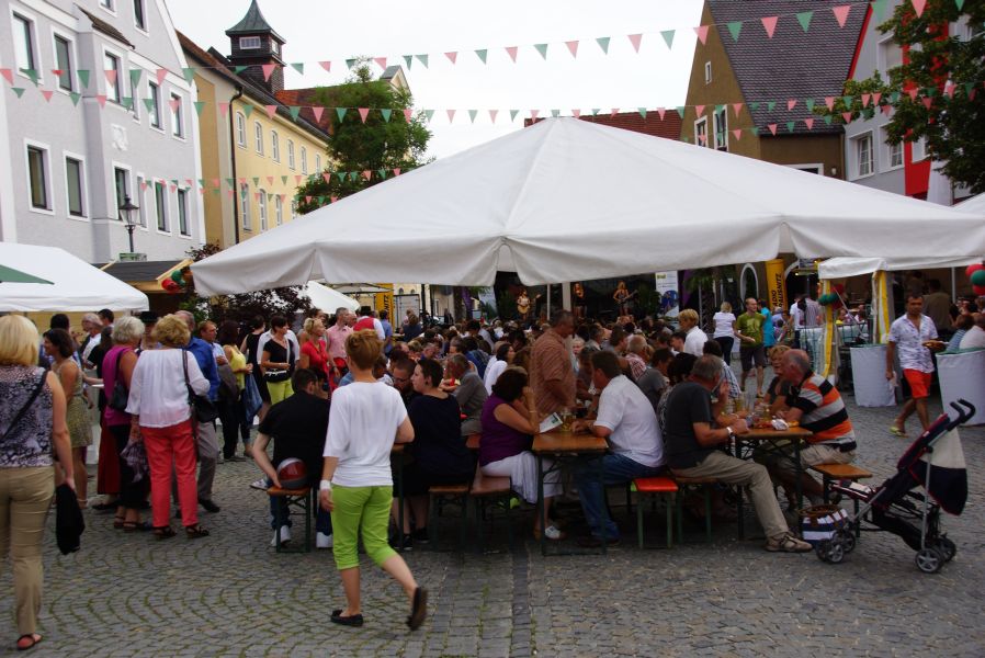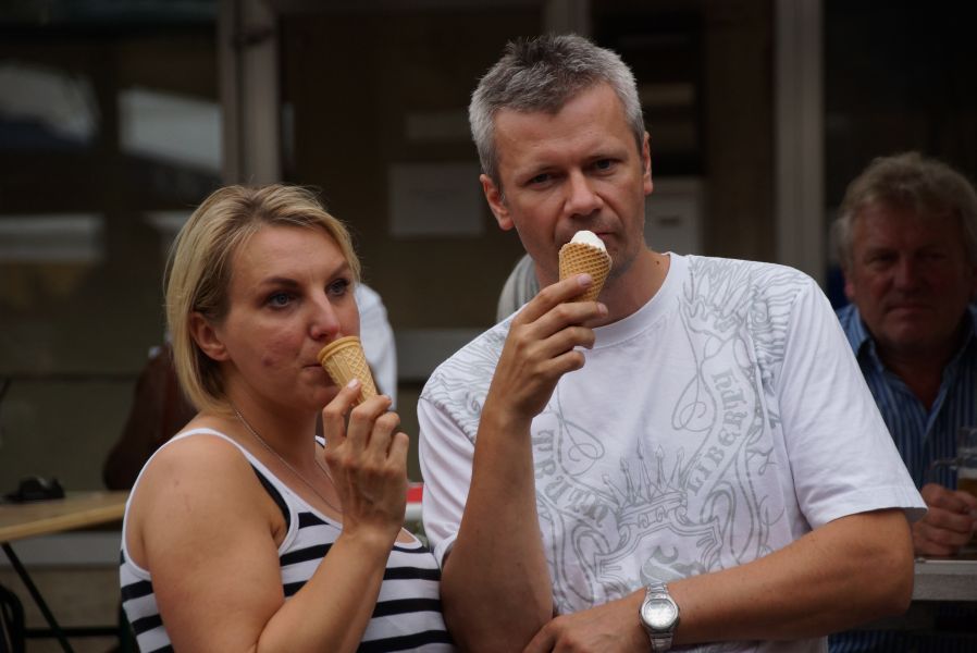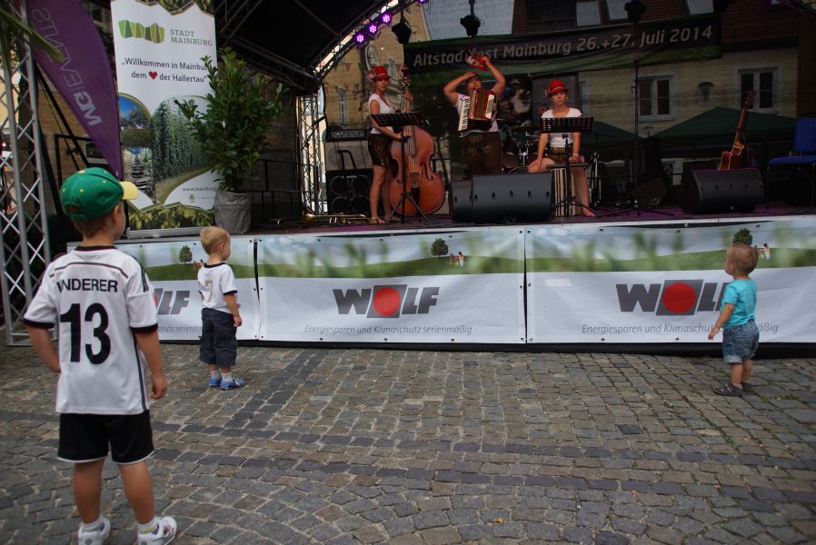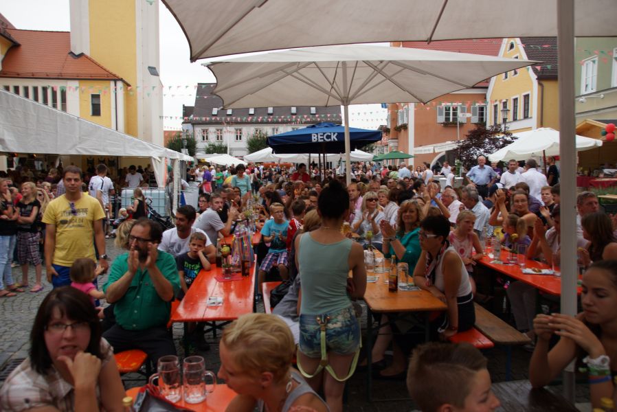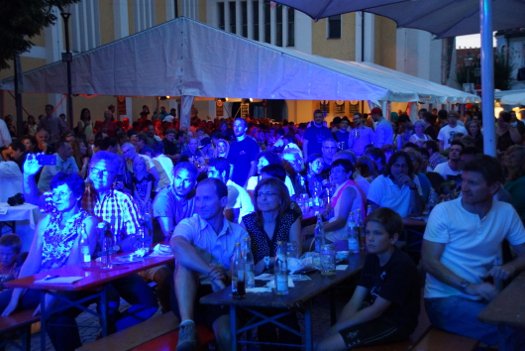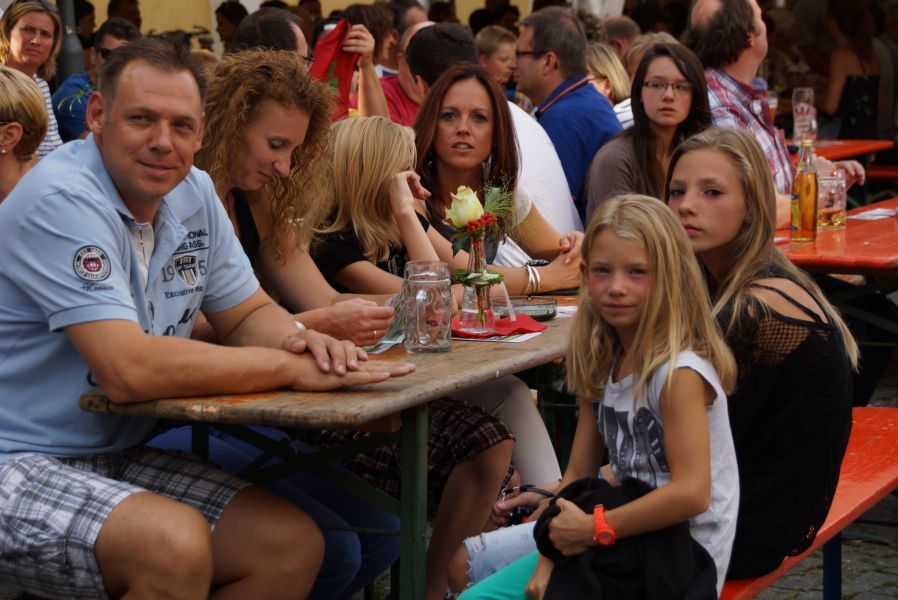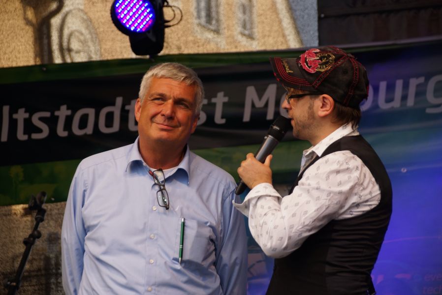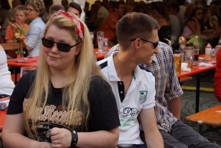 Der Aufritt der „Mad the Gun“ folgte zeitgleich mit einem kräftigen Regenschauer. Man hätte meinen können, dass der Marktplatz innerhalb kürzester Zeit verwaist wäre, aber nein, im Gegenteil. Zahlreiche Besucher tanzten bei strömendem Regen vor der Bühne, es wurde sogar nach einer Zugabe verlangt.