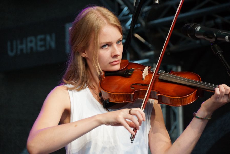 Ihr folgten Sarah Kolmeder aus Unterempfenbach und Amelie Löbel aus Volkenschwand, sie wurden von Lukas auf der Trommel begleitet. Die Lieder der beiden Mädels erinnerten an russische oder ungarische Weisen, was von Sarahs Geige noch betont wurde.
