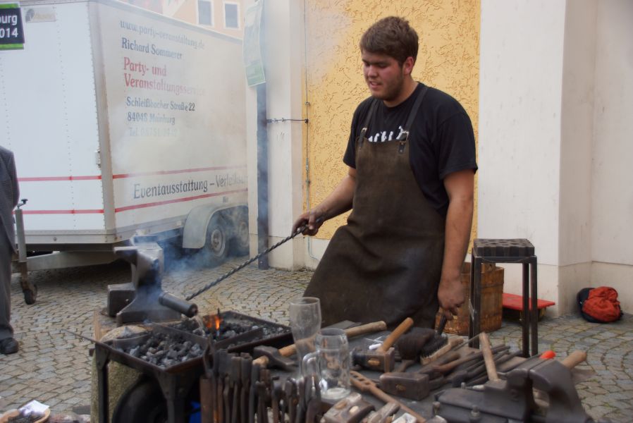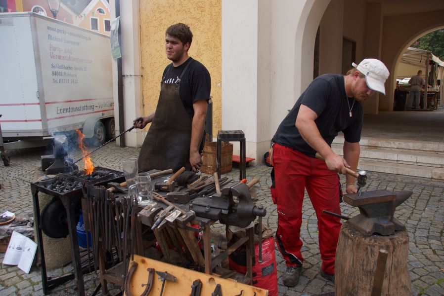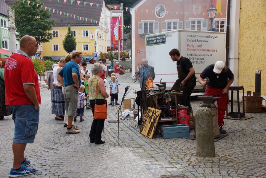 Zudem gab es noch einige Interviews mit Zeitzeugen, eine große Tombola vom Frauenverein Kinderhort e.V., einen Auftritt der Mainburger Narrhalla, eine Kostprobe von „Sauglocknläutn“ und Kunststücke vom Hofzauberer Christopher. Ein Publikumsmagnet war unter anderem die kleine Oldtimerbulldog Ausstellung und die Bachleitnerschmiede, bei der vor aller Augen glühendes Eisen bearbeitet wurde.