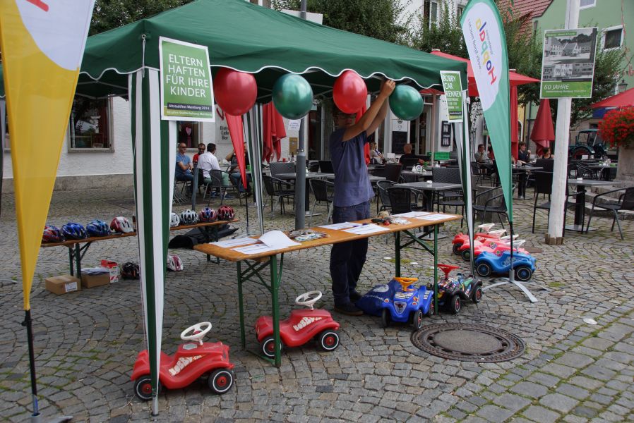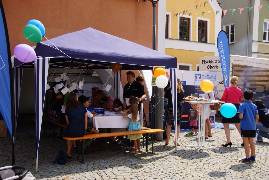 Was allein schon für die Kinder geboten war, konnte nur mit Mühe und Not von den Kleinen „bezwungen" werden. Vom Hoppala Stand, an dem wie immer gebastelt, gemalt und geschminkt wurde; dem Kinderprogramm der Stadt, mit Puzzles und historischen Geschichten; einem Flashmob der Viva Girls; einem Bobbycar-Rennen bis zu einer Luftballonaktion und einem Malwettbewerb der Hallertauer Volksbank.