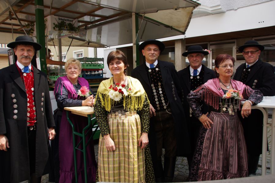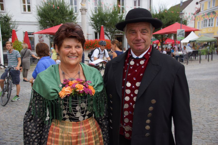 Ihnen folgten die Erwachsenen, alle in wunderschöner Holledauer Tracht, dessen Herkunft der Vorsitzende des Trachtenvereins, auf Nachfrage von Eva-Maria, bis ins Detail erklärte.