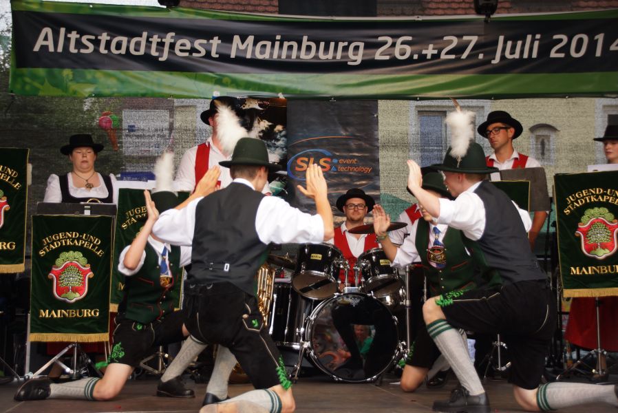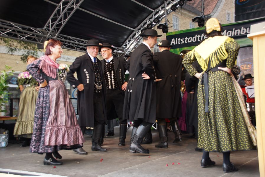 Ab 12.00 Uhr trat der Holledauer Volkstrachtenverein Mainburg auf die Bühne, den Anfang machte hier der Nachwuchs. Sie zeigten verschiedene Tänze und die Buben legten noch einen Schuhplattler aufs Parkett.