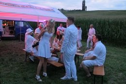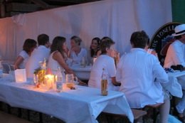 Ende Juli trifft sich die Tonelli-Truppe auf einem Feld außerhalb des Marktes, um ihre Sommerparty zu feiern. Es quirlt richtig an jungen und alten Gästen. Allen gemein und sofort erkennbar: sie kommen ausschließlich in weiß gekleidet. So bekommt das Geschehen etwas Theatralisches, Abgehobenes.