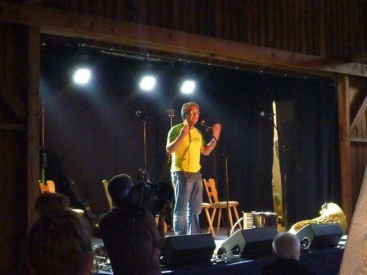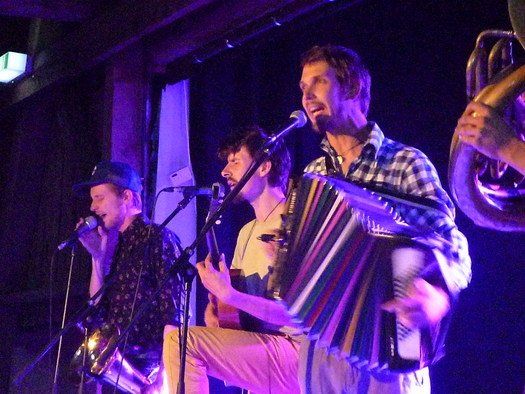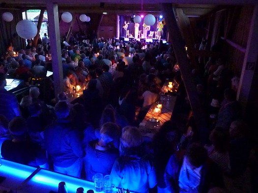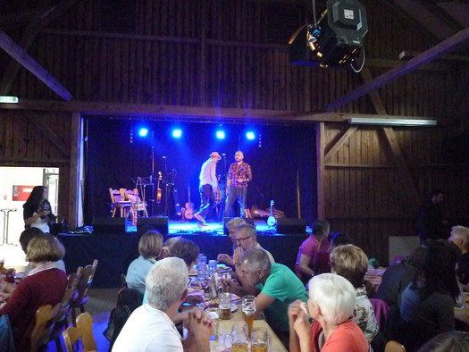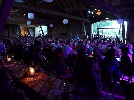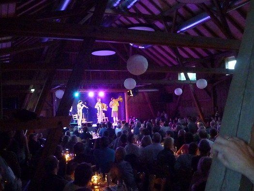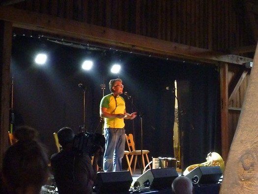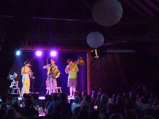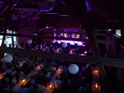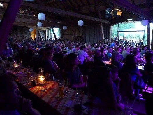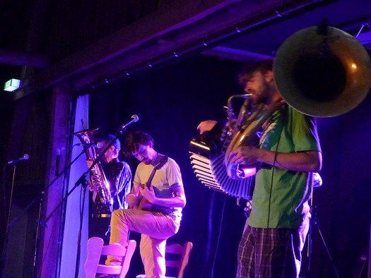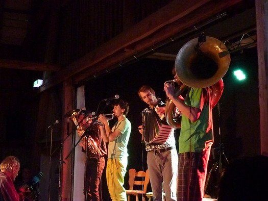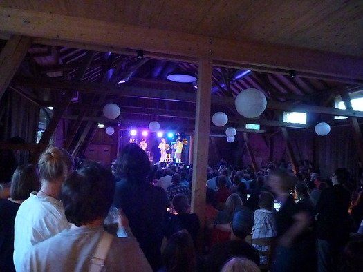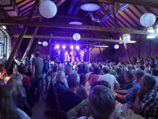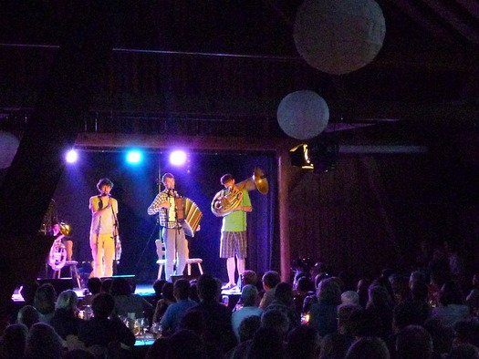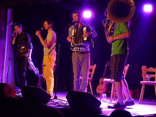 „Wie schön ist das eigentlich?“ oder anders „Wie schön ist das EIGENTLICH!“ eine Frage in der Antwort, über die sich bei Posaunenklängen, gemischt mit Akkordeon, Tuba und Gitarre, trefflich meditieren ließ. Kofelgschroa ist anders als normal, etwas DADA im Text und uriger bayerischer Jazz, den es bis dahin praktisch nicht gab in der musikalischen Darbietung. Eigentlich wissen sie nie, wie lang so ein Abend dauert, siehe die Küchenuhr, aber nach drei Zugaben wurde das voll entspannte Publikum (mit einem Lächeln auf den Lippen - siehe Film) in die frische Sommernacht entlassen.
