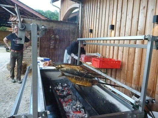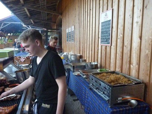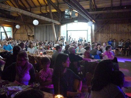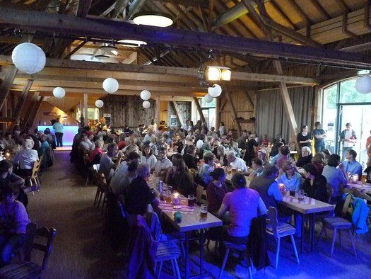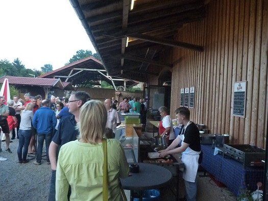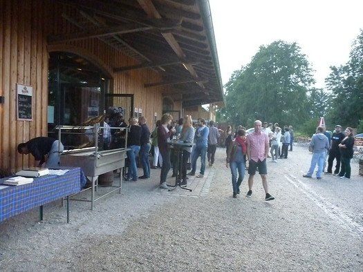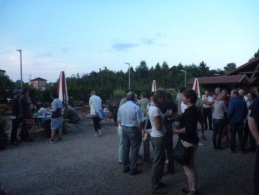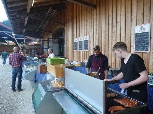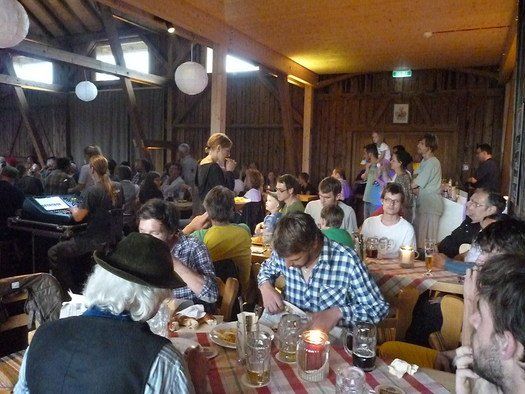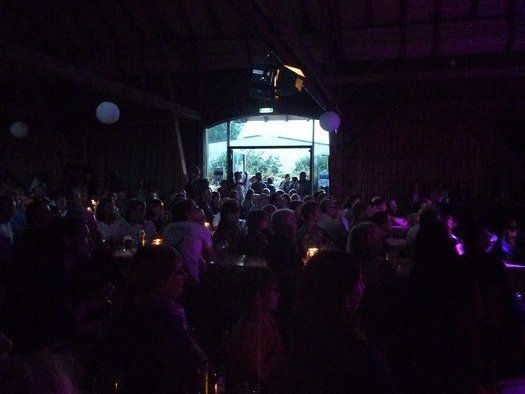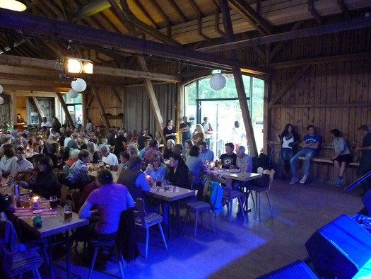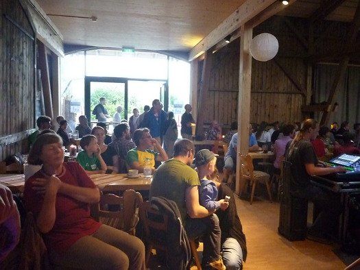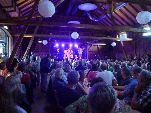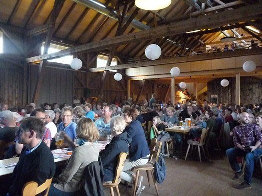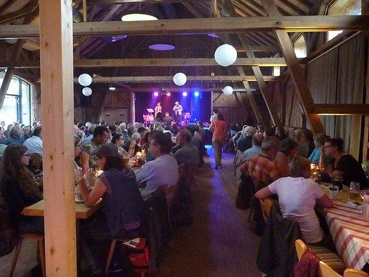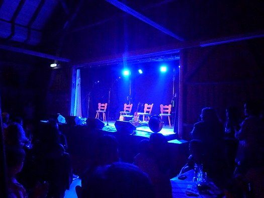 „Wie schön ist das eigentlich?“ oder anders „Wie schön ist das EIGENTLICH!“ eine Frage in der Antwort, über die sich bei Posaunenklängen, gemischt mit Akkordeon, Tuba und Gitarre, trefflich meditieren ließ. Kofelgschroa ist anders als normal, etwas DADA im Text und uriger bayerischer Jazz, den es bis dahin praktisch nicht gab in der musikalischen Darbietung. Eigentlich wissen sie nie, wie lang so ein Abend dauert, siehe die Küchenuhr, aber nach drei Zugaben wurde das voll entspannte Publikum (mit einem Lächeln auf den Lippen - siehe Film) in die frische Sommernacht entlassen.