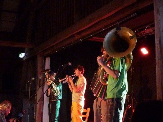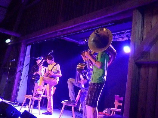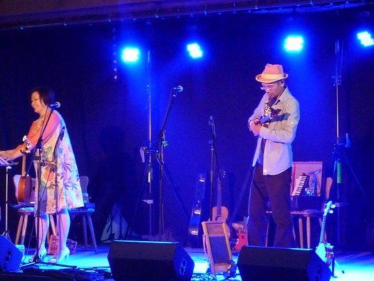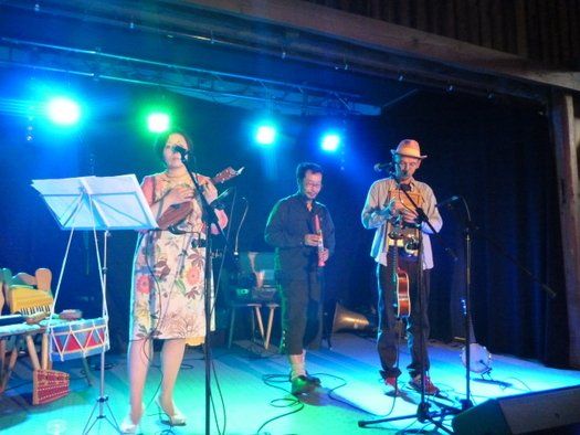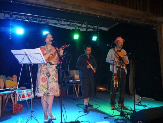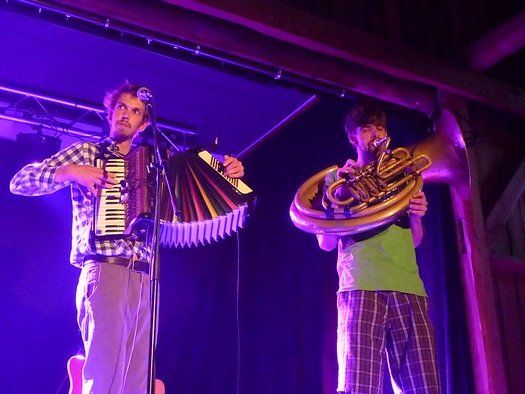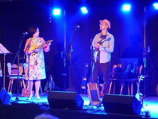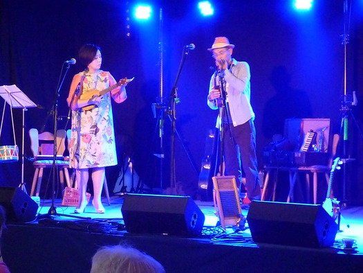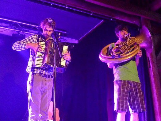 Bei vollem Haus und über den Biergarten hinaus eröffneten zwei bayerische Japaner das Abschlusskonzert, das wieder unter dem bayernweiten Festivallabel „Lokalklang“ stand. Eine Ukulele, diverse Zupfinstrumente, Kinderharmonikas, ein Waschbrett und eine Nasenflöte, fertig war das Orchester. Als Gast ein G´stanzlsingender Wirt der urigen Art und ein fernöstlicher Hilfsbläser, die Sprache gscherd bayrisch japanisch, Englisch und Italienisch. Herrlich schräg, gut arrangiert und perfekt intoniert, die Welt ist ein Dorf.