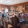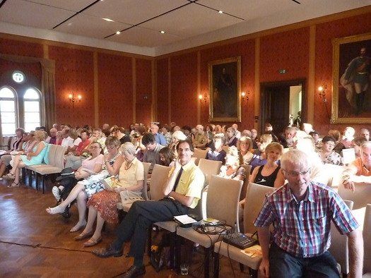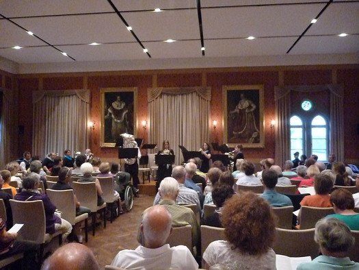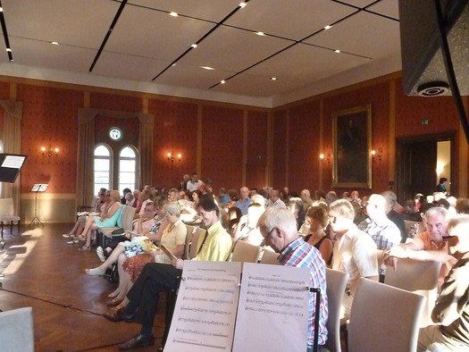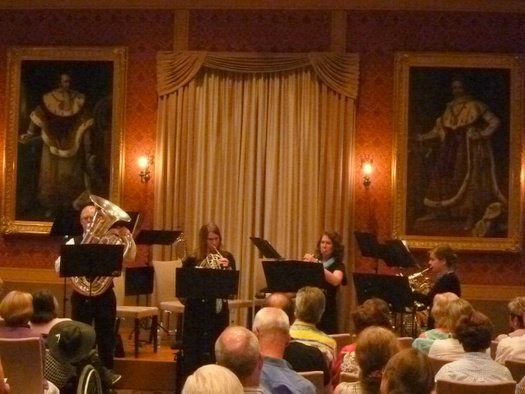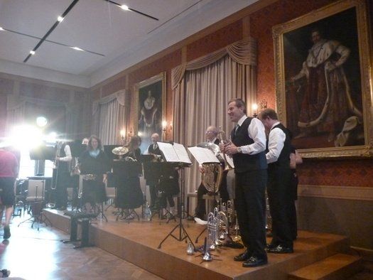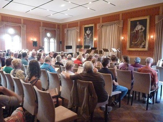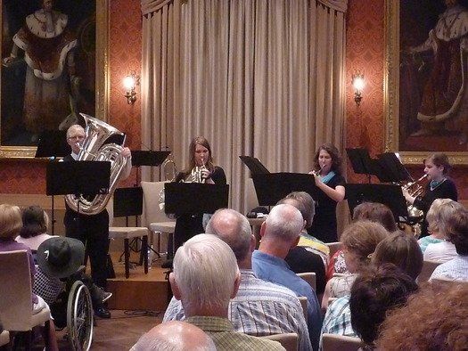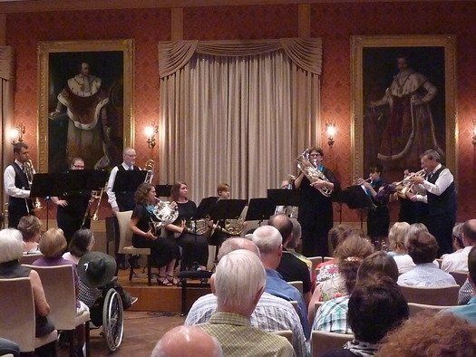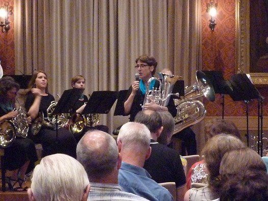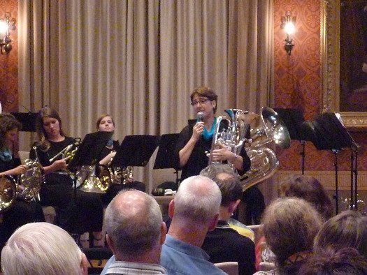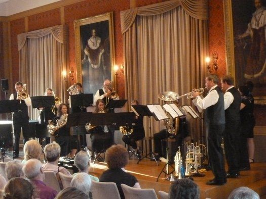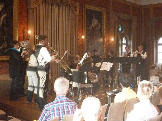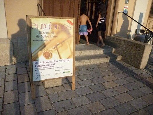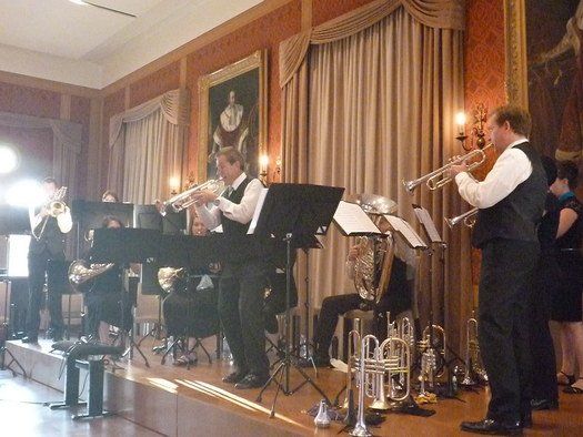 Der Ruf der Gemeinde und der Bläser hallte schon am Nachmittag mit einem Standkonzert durch die Innenstadt und so war der historische Saal bei der hoch professionellen Vorstellung, auch gut gefüllt. Einmal im Jahr kommt die bunt gemischte Bläsertruppe von Eurobrass, in wechselnder Besetzung, über den großen Teich in den alten Kontinent. Die Mitglieder sind ausnahmslos Profis ihres Faches und finden sich auf eigene Kosten zu diesen Konzertreisen zusammen.